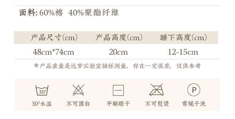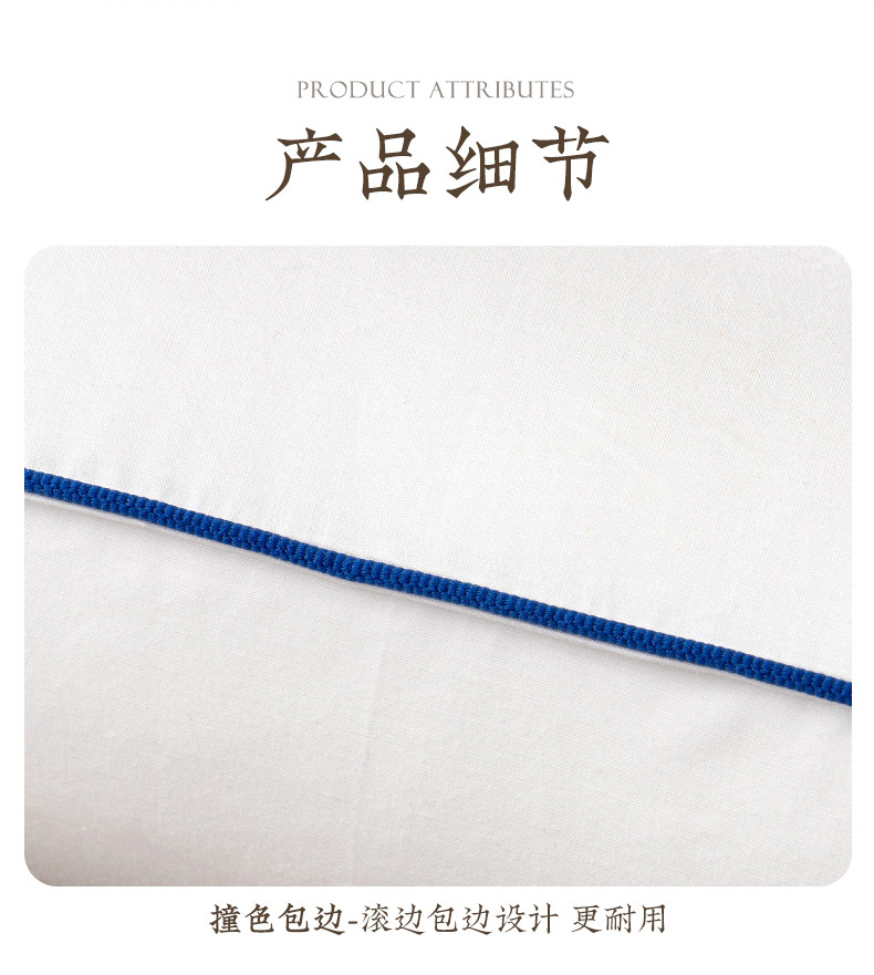 b.【透气舒适】:填充物采用三维中空纤维,手感柔软,不易变形,蓬松感好,精美包边上绳使枕芯时尚大方。