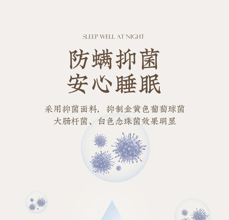c.【专门的配方助剂】:能有效的抑制有害细菌、霉菌、真菌和尘螨的滋生。