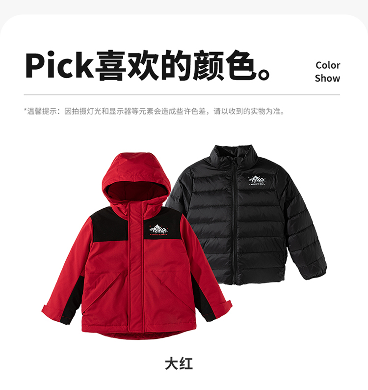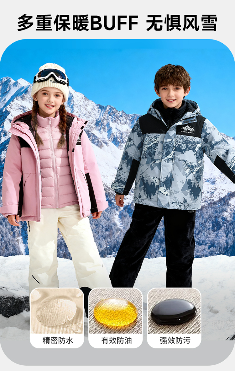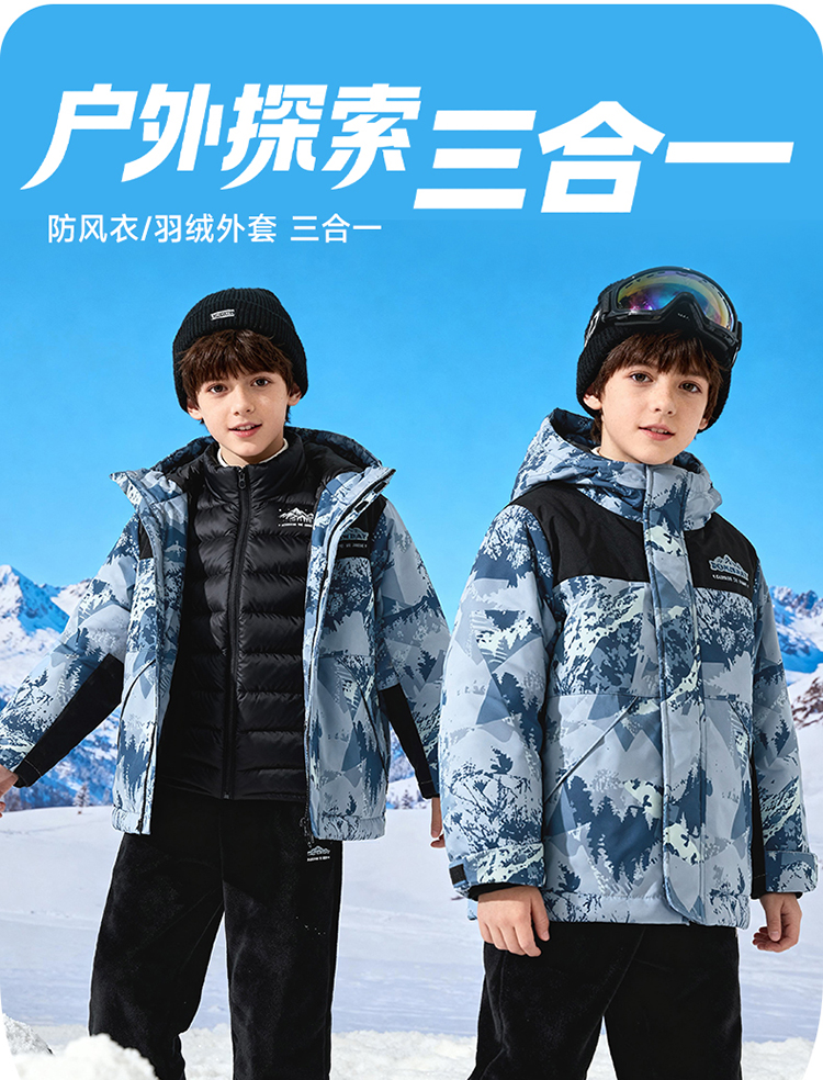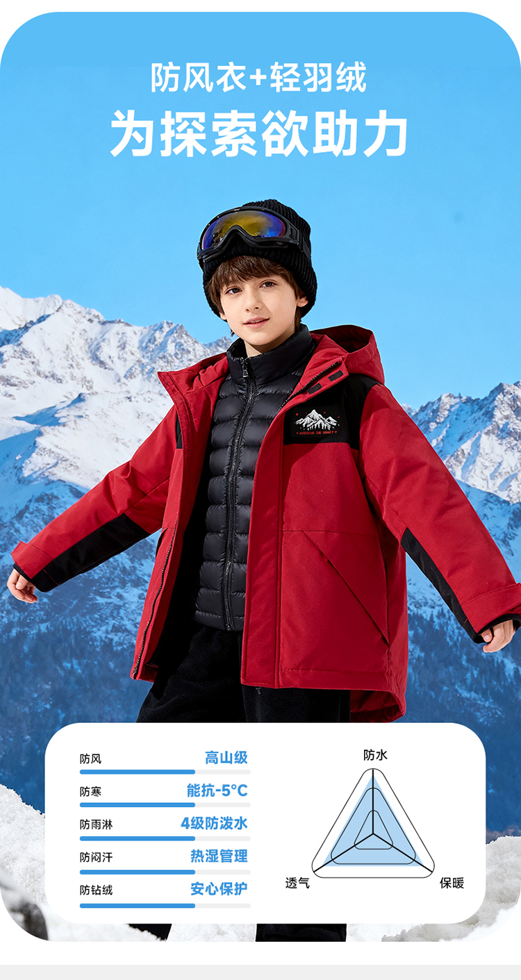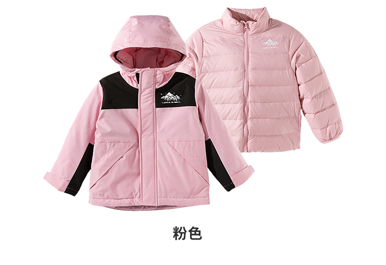 贝贝怡冬季新款男女童户外登山连帽防风保暖软壳外套羽绒内搭套装ZB4ES033