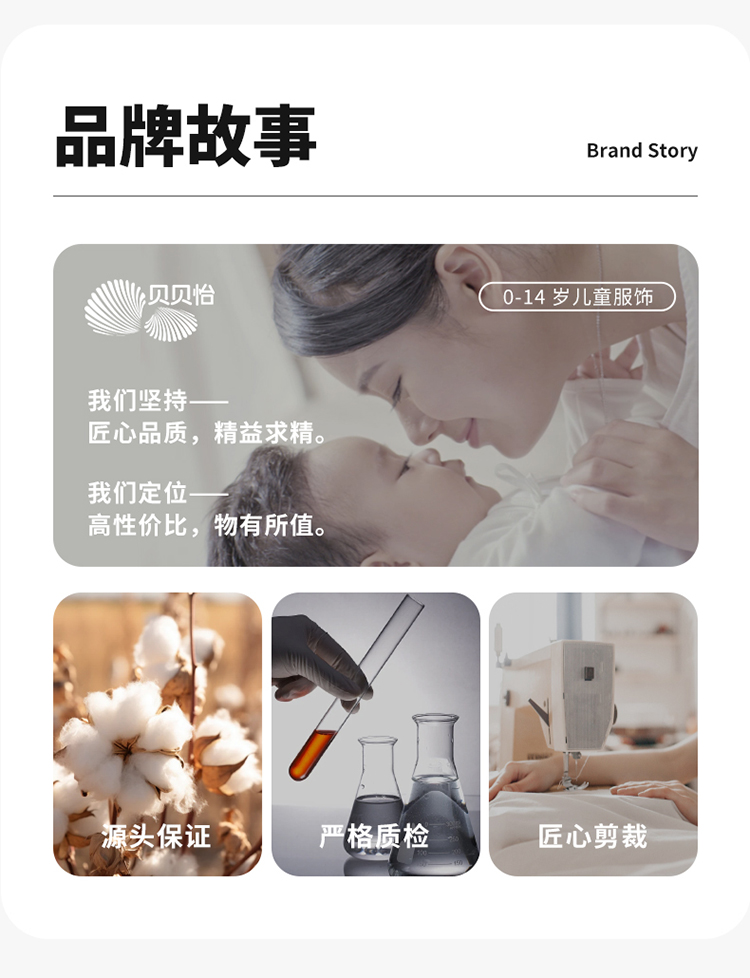 - 贝贝怡专注0-6岁婴幼儿服饰,坚持安全、柔软、舒适的产品理念,为千万中国家庭提供超高品质、安全可靠的婴幼儿服饰产品,妈妈放心,宝宝开心!