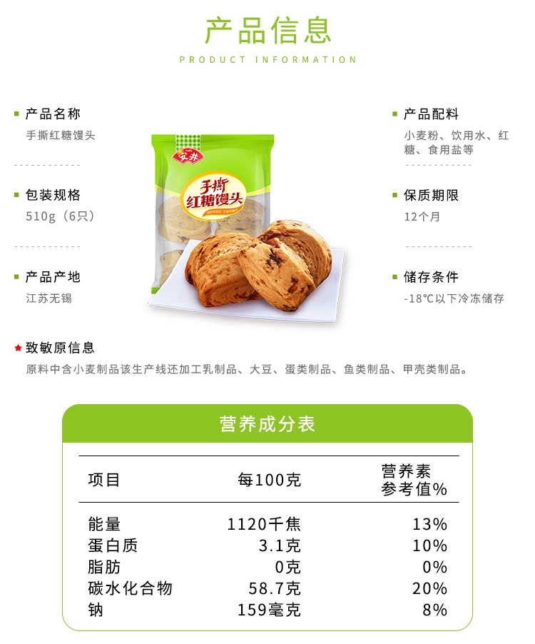 安井 红糖手撕馒头510g*2包