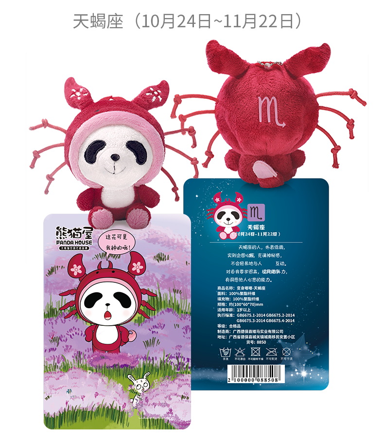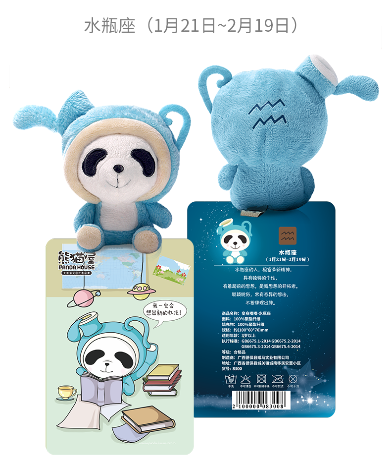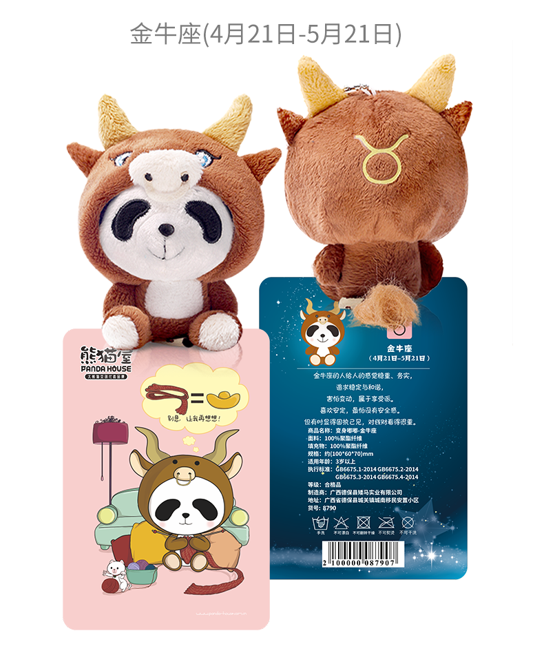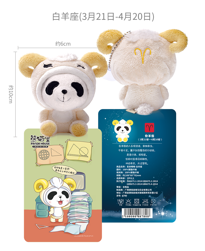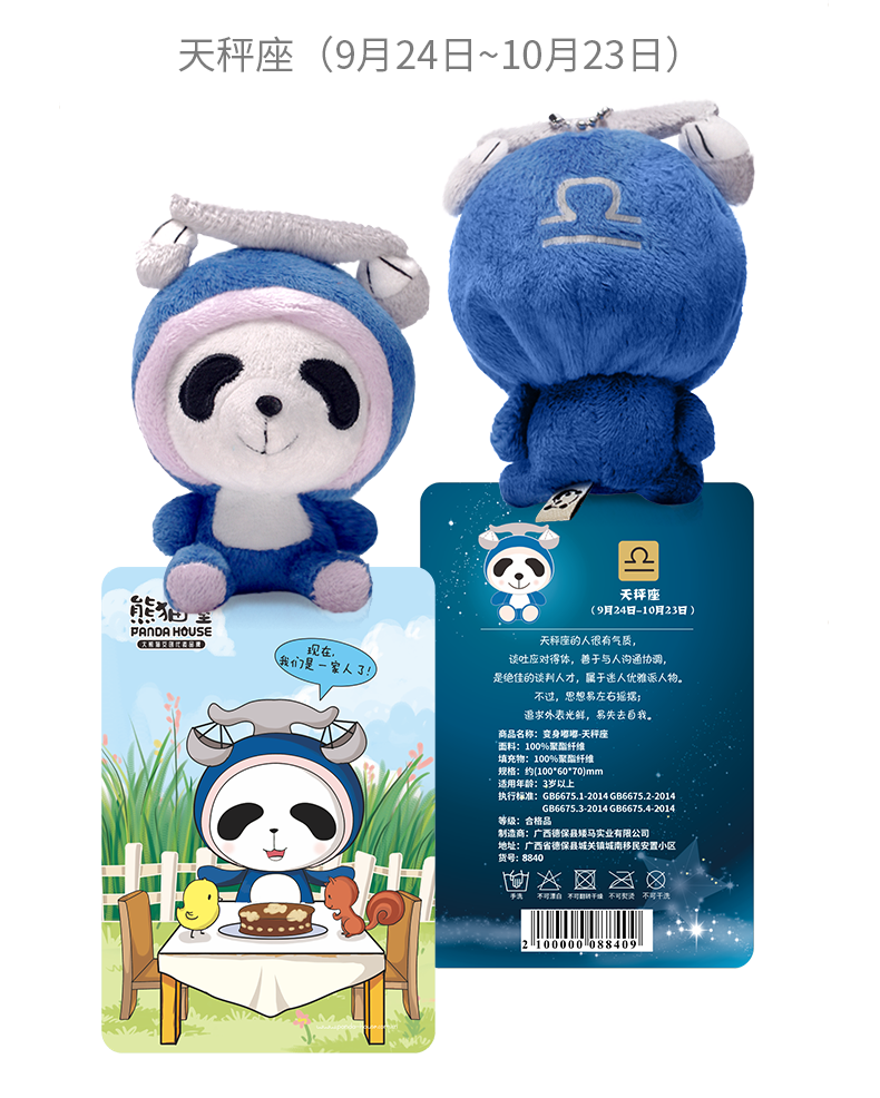 熊猫屋PANDAHOUSE 变身嘟嘟十二星座系列毛绒公仔挂件小号 送吸盘挂链 送纸袋