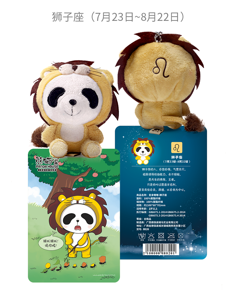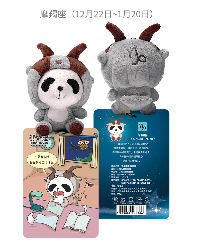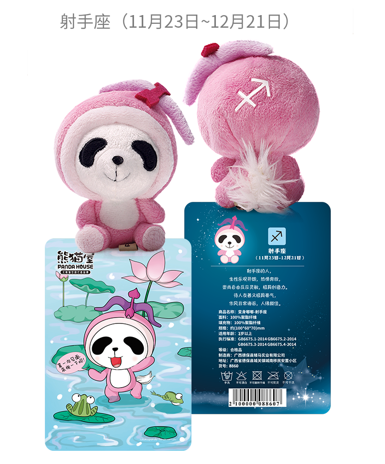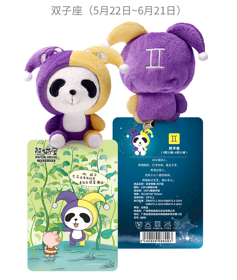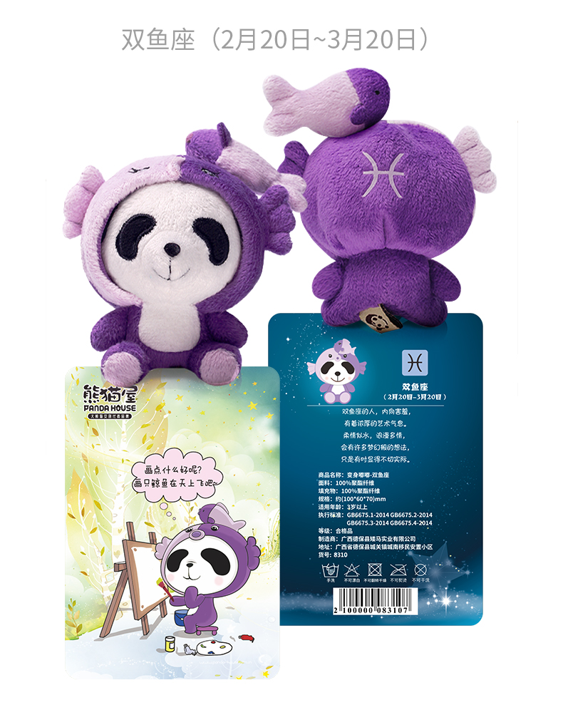 熊猫屋PANDAHOUSE 变身嘟嘟十二星座系列毛绒公仔挂件小号 送吸盘挂链 送纸袋