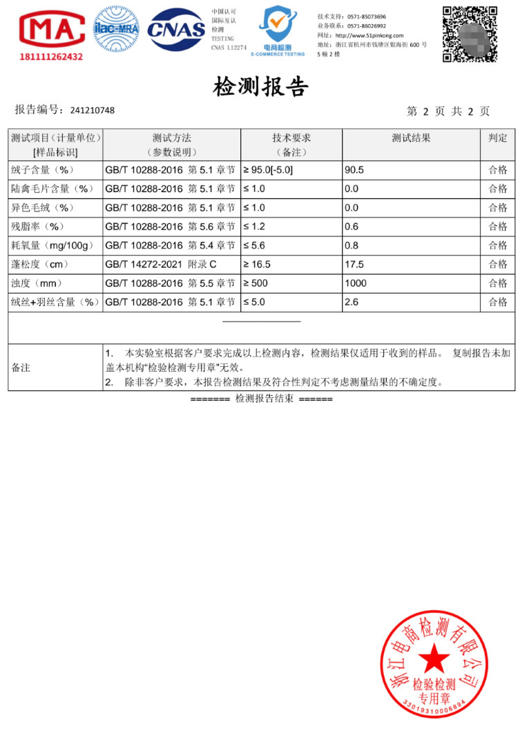 就可以看到这件衣服所充羽绒的信息及检测结果