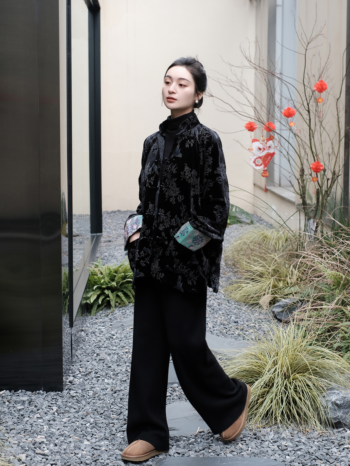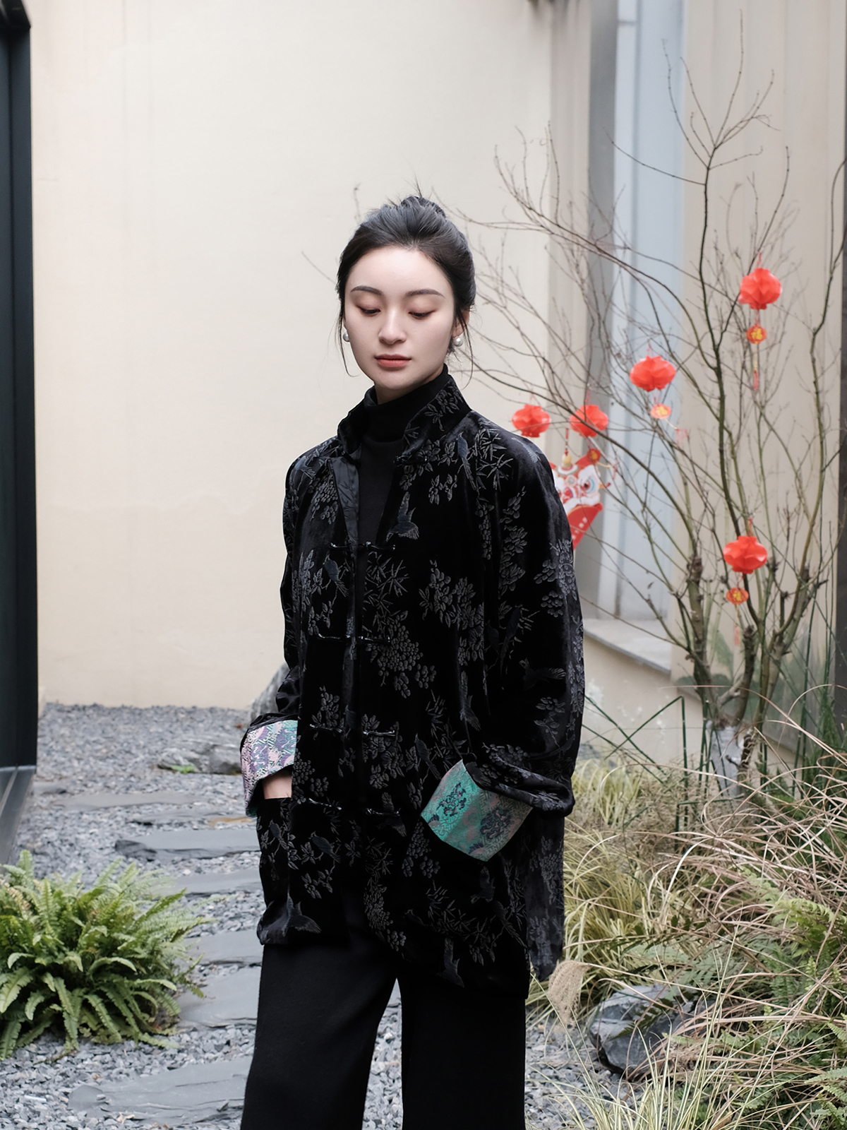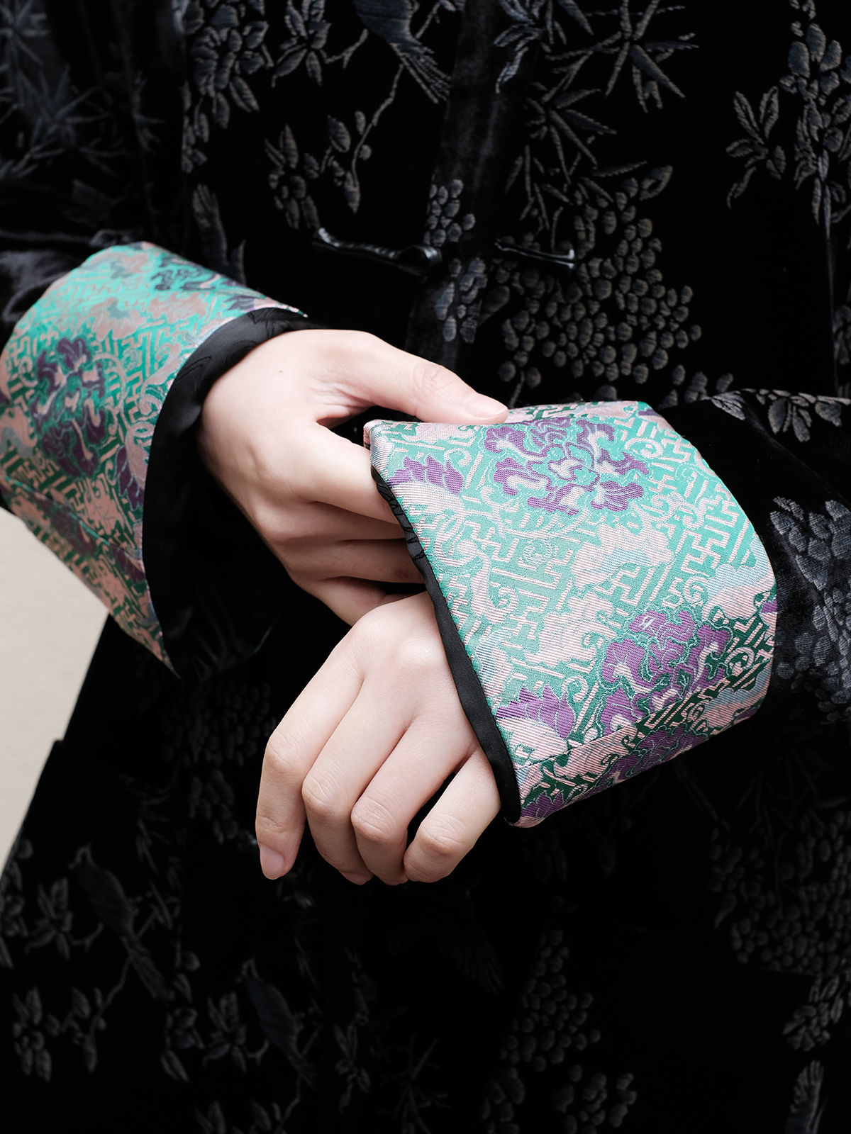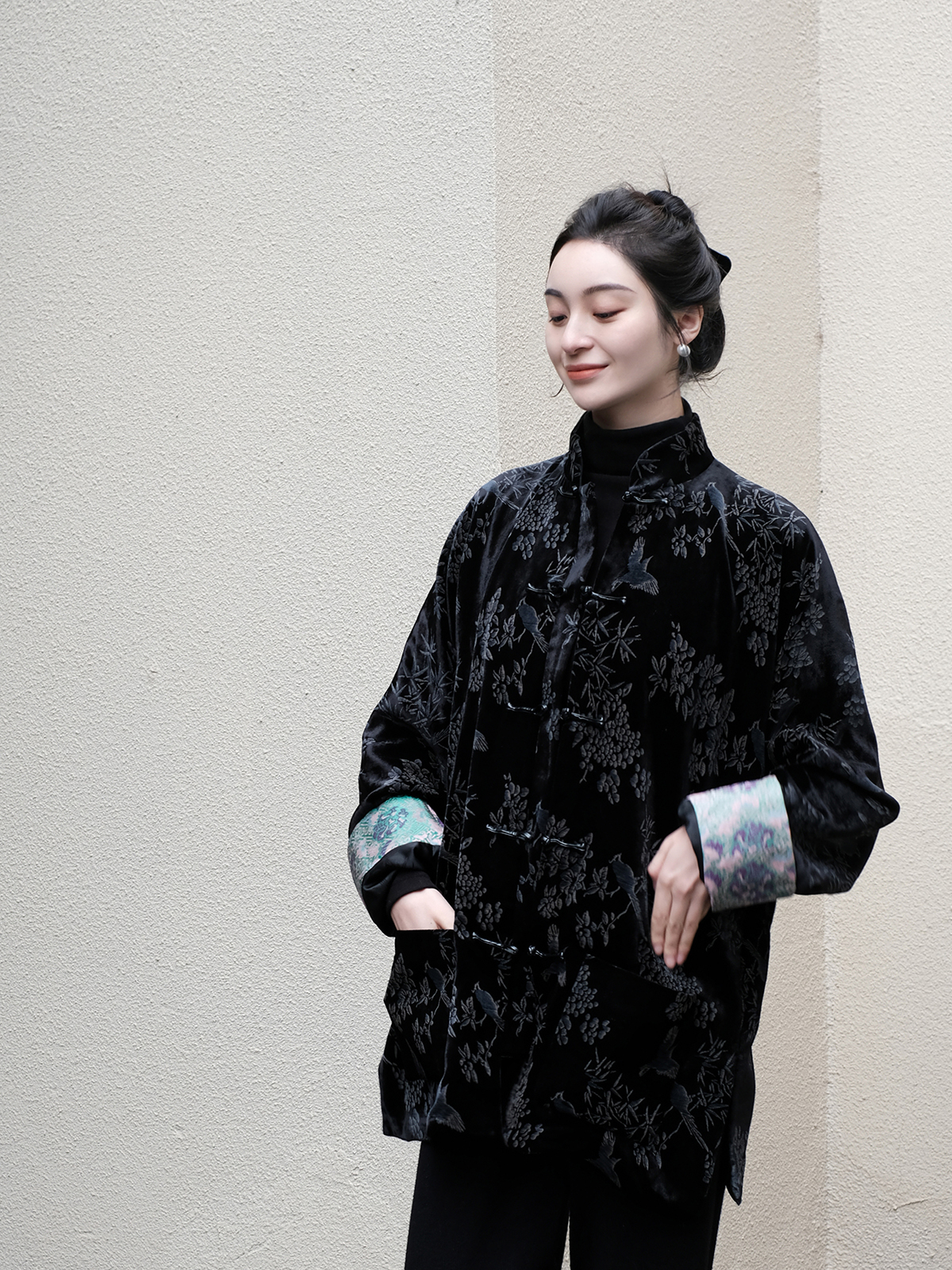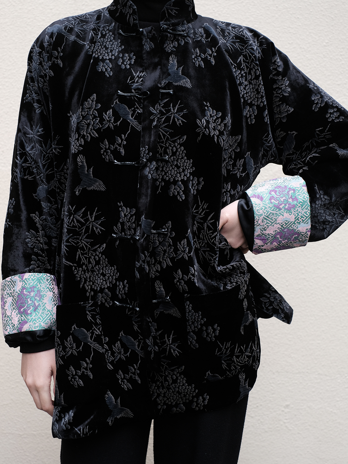 盛唐牡丹 |黑色丝绒小鸟挽袖外套