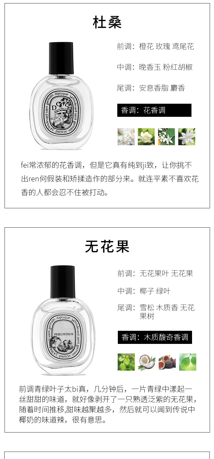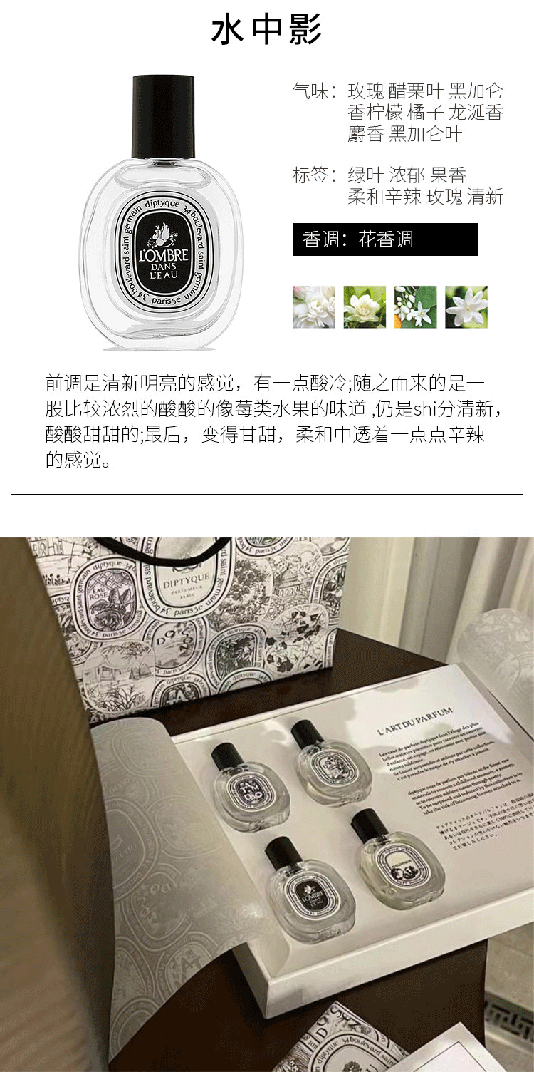 【商品名称】:diptyque蒂普提克淡香水体验装四支装 【规格】:檀道/杜桑/无花果/水中影,10ml*4 【产地】:法国 【生产日期】:批号:4W09G, 有效期:2027-09 【注意!!!】批次更新较快,具体以实收批次日期为准 【保质期】:三年(国家质量监督检验检疫总局规定,化妆品类必须标注保质期限期三至五年)。 【普及】:香水是没有保质期的(香水酒精含量一般有78%,酒精储存妥当是越放越醇,储存妥当是没有保质期一说的)。 【储存防晒】:避免阳光直晒,灯光照射,尽量放在阴凉的地方(柜子、抽屉是不错的选择)。 【包装方式】:礼盒装(塑封) 【快递】:韵达快递 【运费标准】:全国包邮,新疆西藏+20 【发货地】:广东 【发货时效】:72小时 【收货标准】:支持七天无理由退换(未拆封且配件齐全,不影响二次销售) |