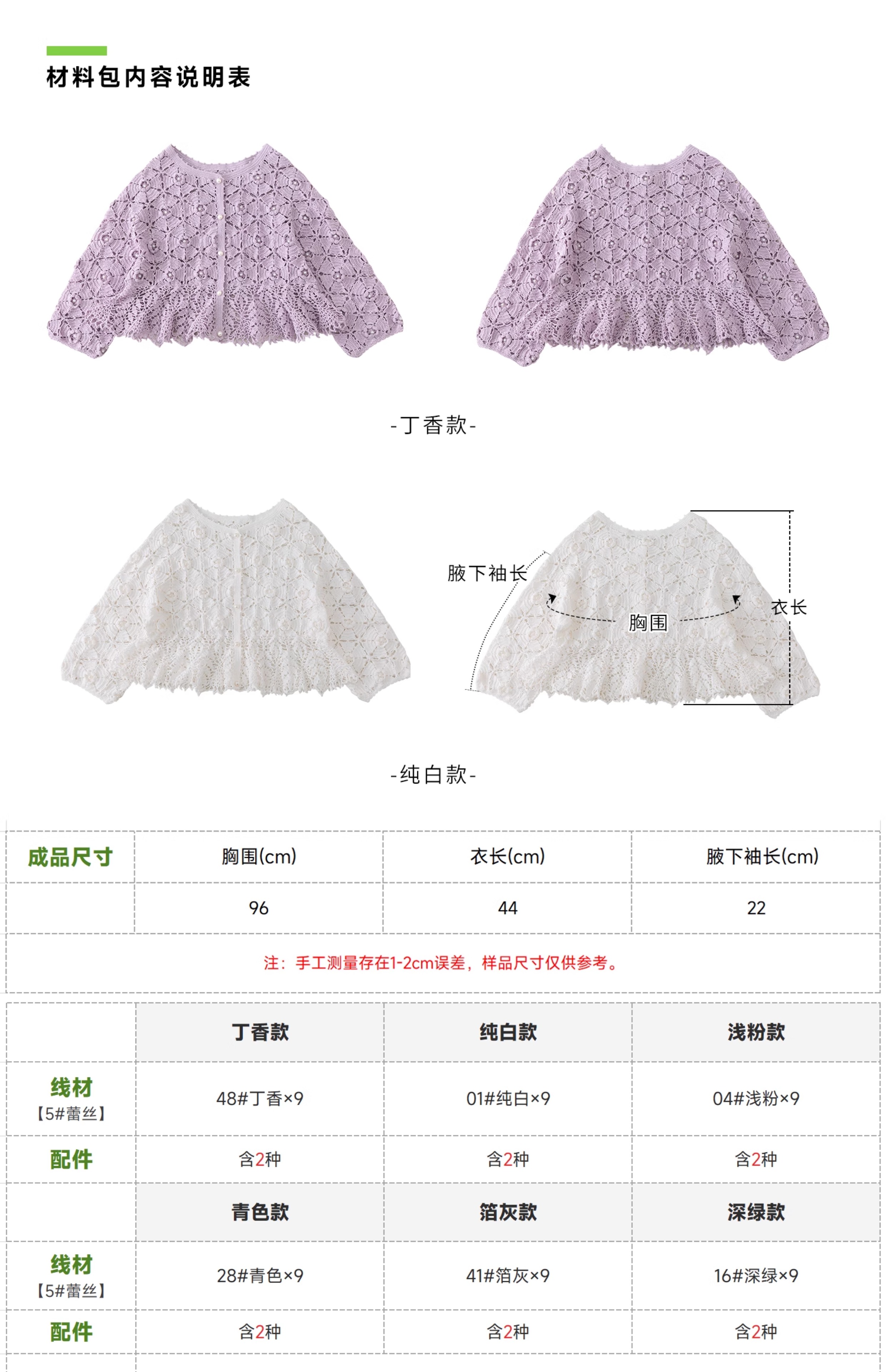 苏苏姐家曼丽开衫手工DIY编织钩针上衣毛线团蕾丝线材料包