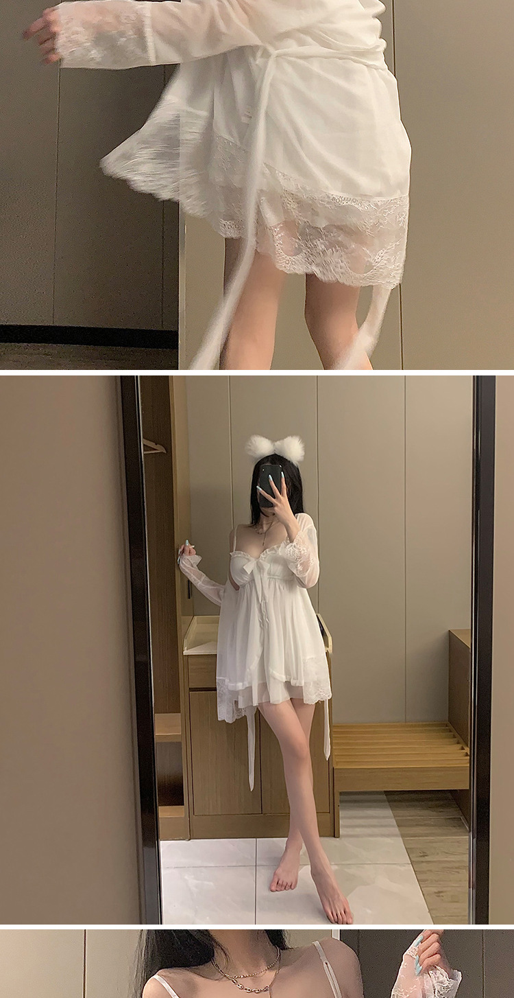【超美法式小香风❗️公主性感吊带睡裙】舒适到像裸穿,穿上不想脱下来!日系蕾丝甜美长款衬衫睡衣,连衣裙家居服长袖睡衣睡裤L