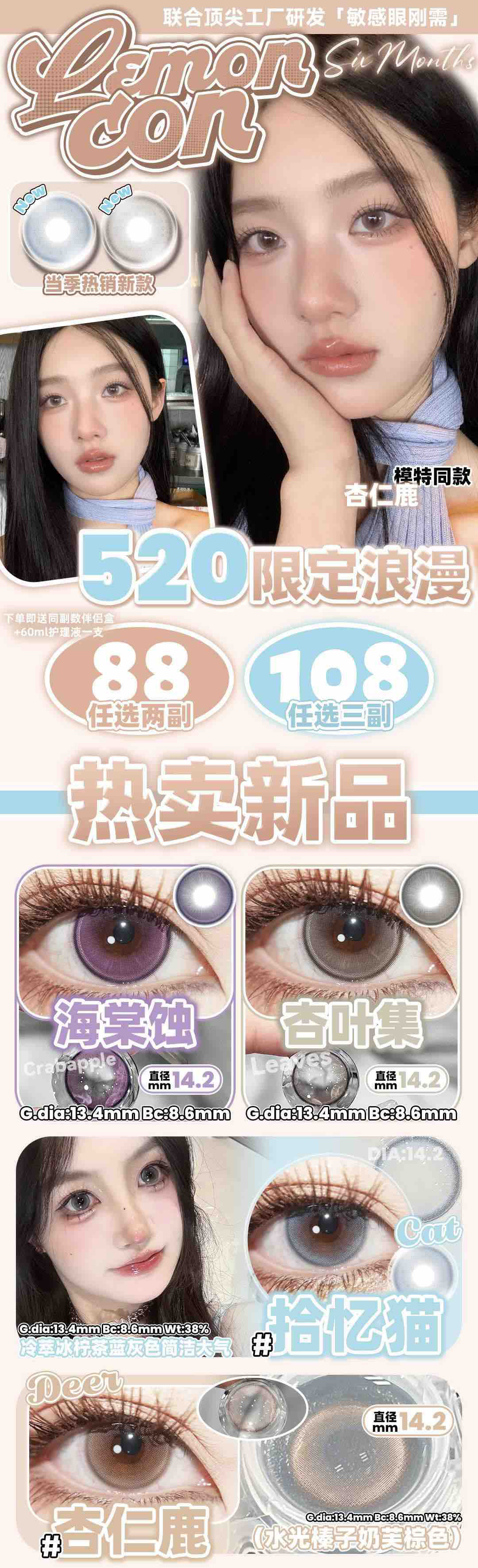 lemoncon半年抛上新款啦!全色板上头真的太好看啦;就是你们夏天的调色盘~活动88/2副 108/3副 送护理液+伴侣盒