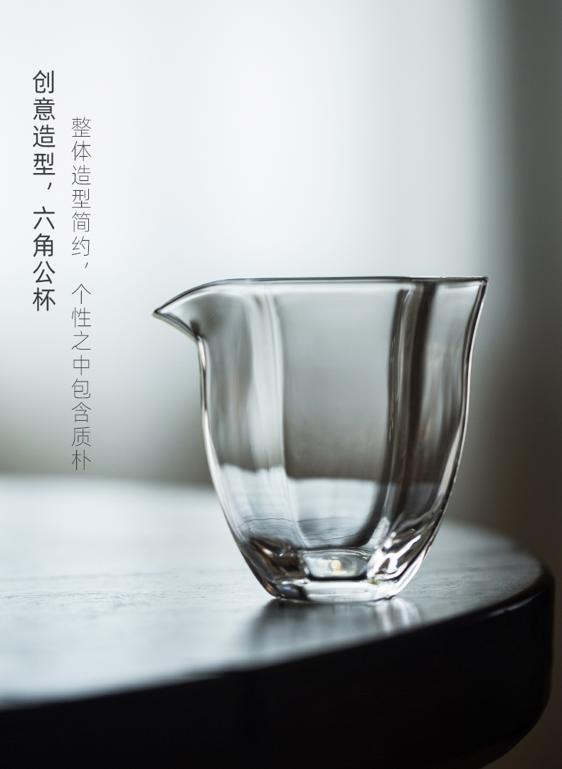 永利汇网红玻璃六角公道杯小号容量分茶器功夫茶具配件茶海公杯