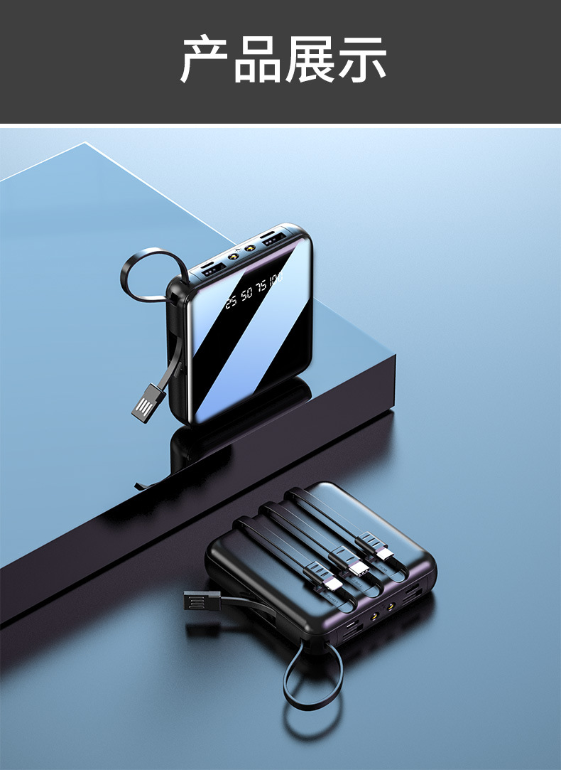 【数码】迷你大容量自带线充电宝礼品定制logo 20000毫安便携移动电源