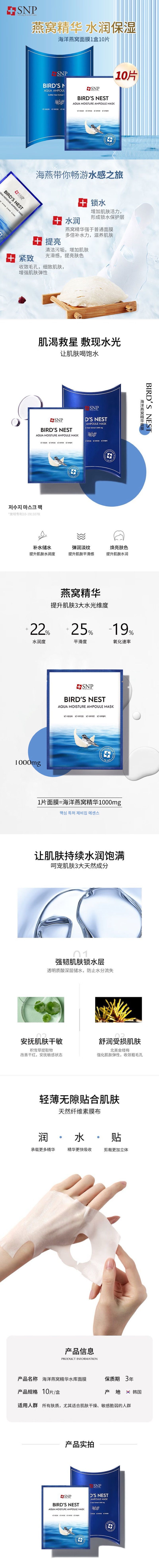 韩国爱神菲海洋燕窝补水精华面膜10片/盒, 深层补水保湿滋润SNP水库面膜;黄金胶原蛋白面膜 抗初老抗皱奢养肌肤