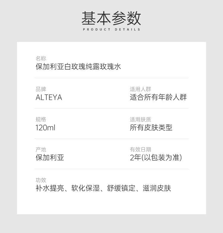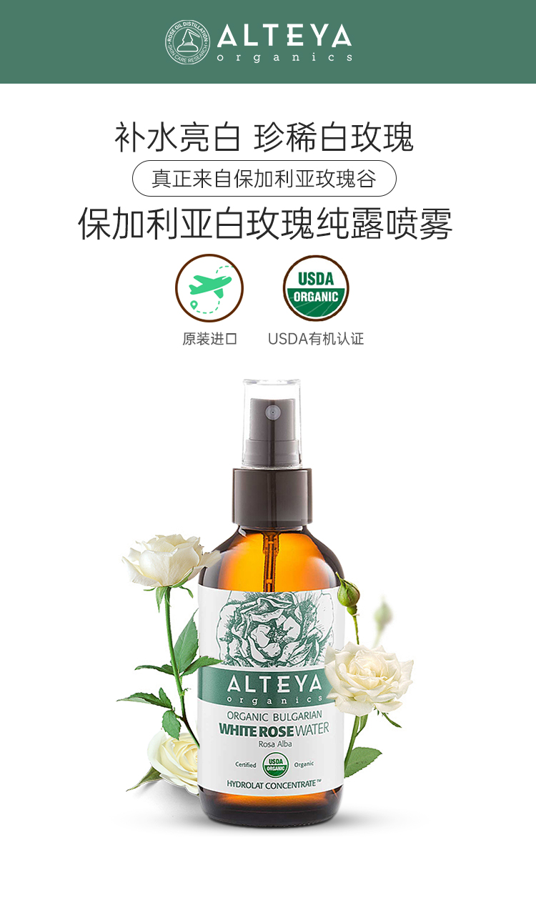 【保税区包邮直发】Alteya 爱蒂娅 Alba白玫瑰纯露 珍贵稀有 亮白补水120ml