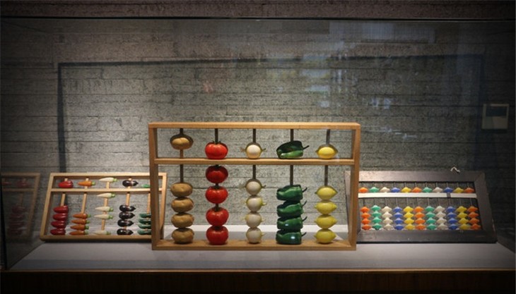 导游姐姐对珠算史厅精美展品的精彩讲解
