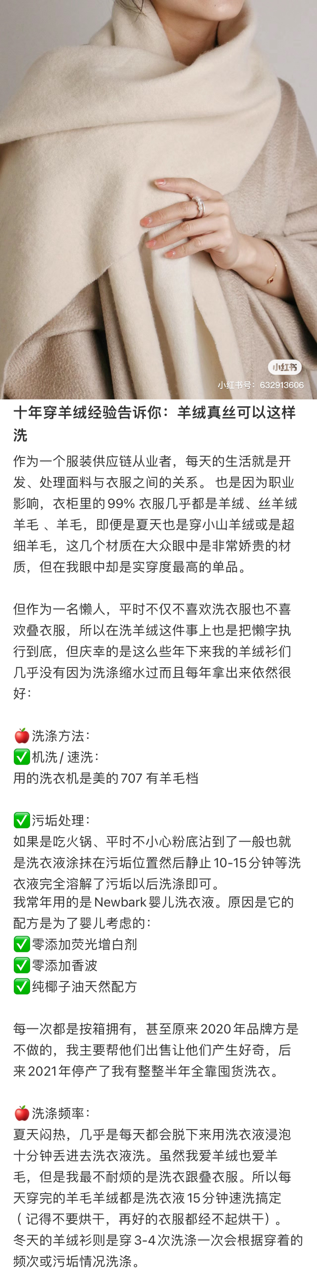 适用性很广,秋冬的羊绒大衣、羊毛围巾,还是春夏时节的真丝衬衫和裙子,还有柔嫩亲肤的内内,都可以用哦!只需要简单浸泡和轻轻揉搓,就可以把各种顽固污垢一扫而光,让衣物焕然一新。同时,还添加了特有的雪松精粹,滋养面料、护色提亮的同时,使衣物柔软蓬松,远离静电!