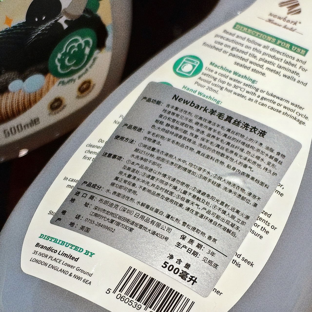 [屁侠推荐]英国Newbark 羊毛真丝洗衣液 圣罗兰花木香 柔软防缩 蓬松防硬 500ml/瓶*2瓶