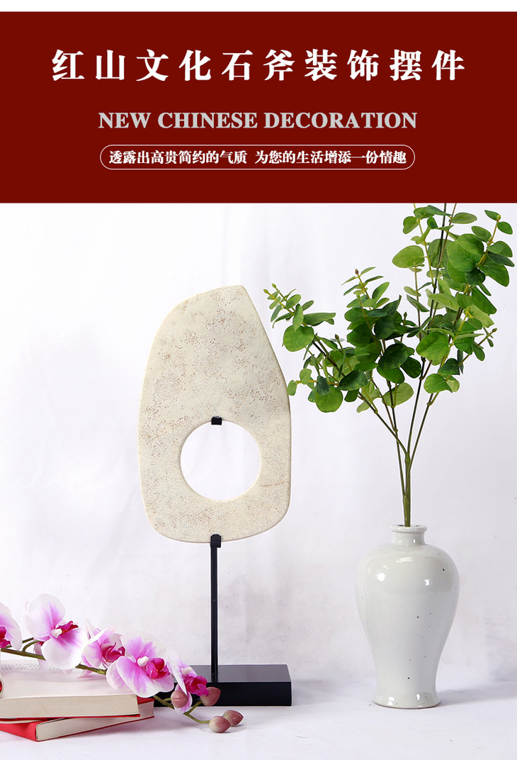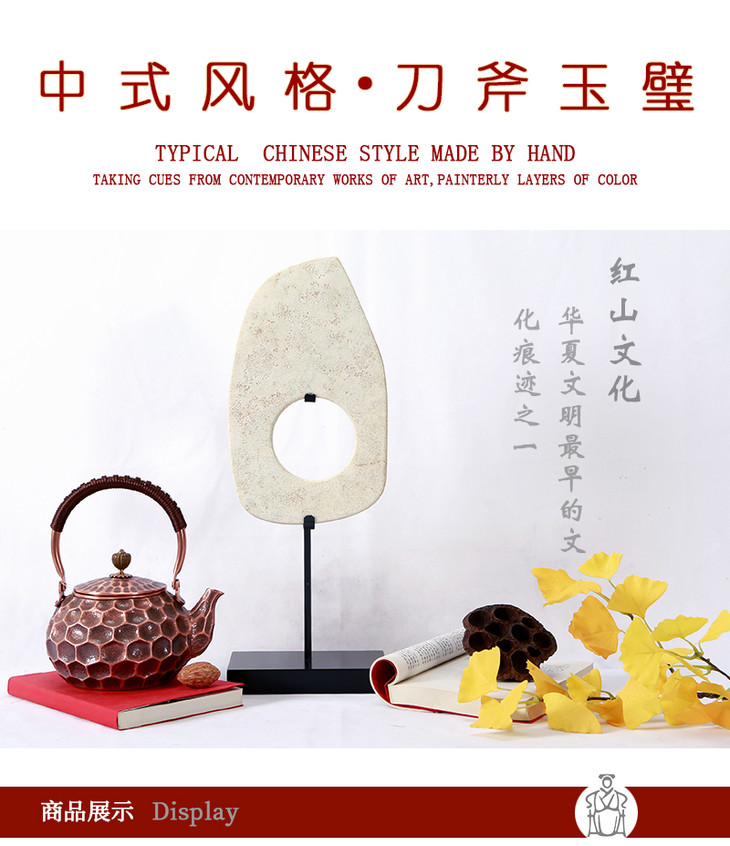 高古玉大型玉斧摆件玉璧软装中式新古典