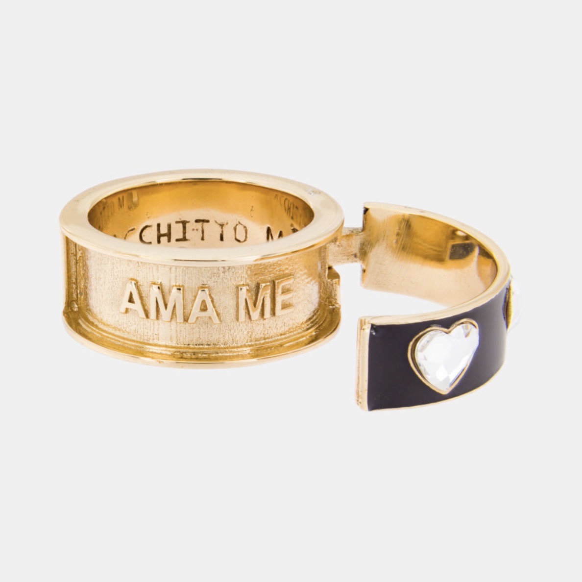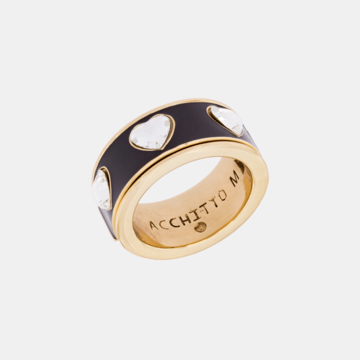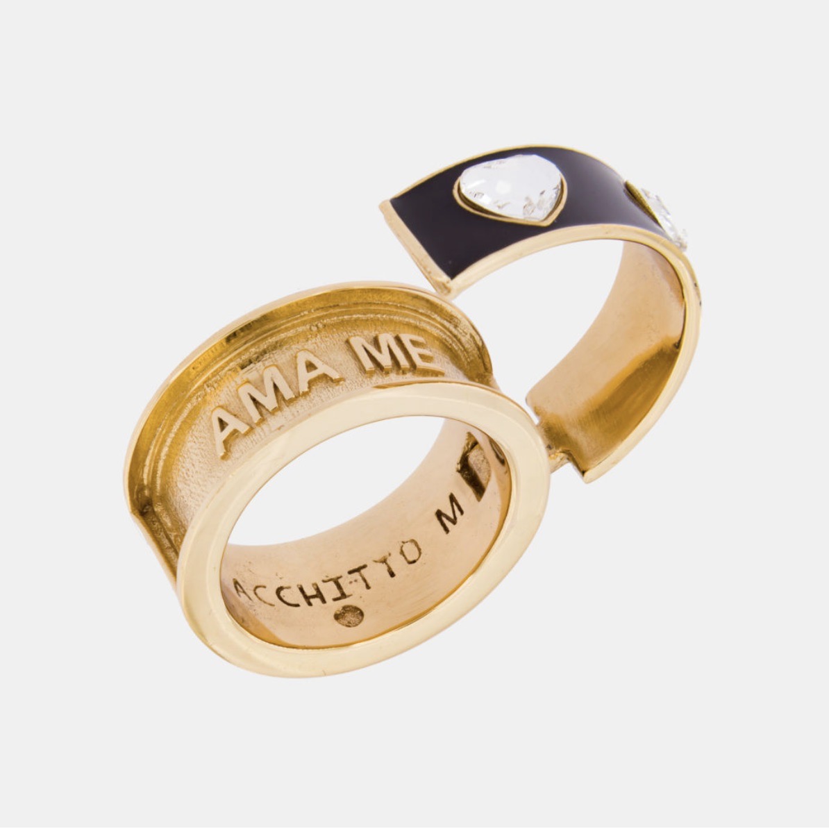 北京仓|Acchitto-AMAME- 经典黑 密语 爱我 水晶 戒指[意大利设计师]