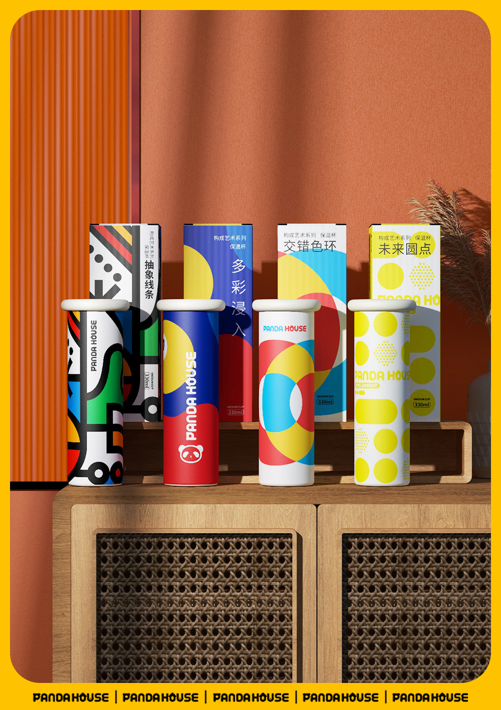熊猫屋PANDAHOUS 构成艺术保温杯 多款可选