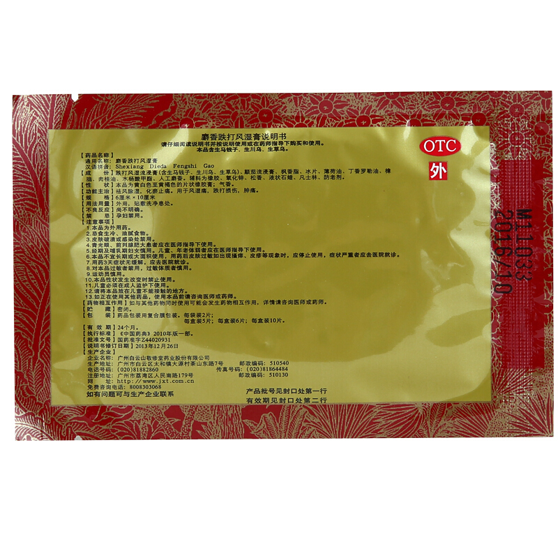 敬修堂麝香跌打风湿膏6片风湿痛 跌打损伤 关节肿痛