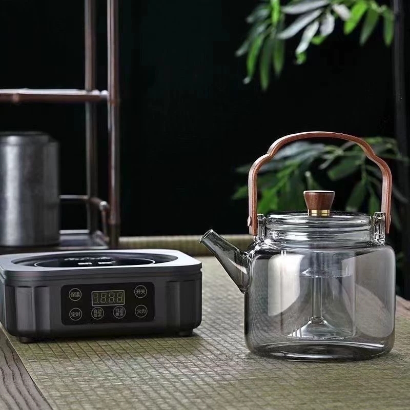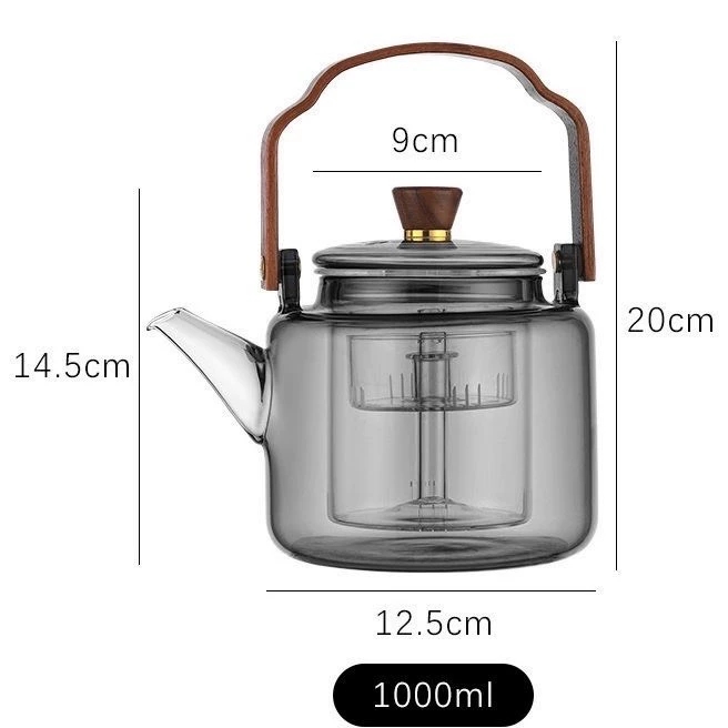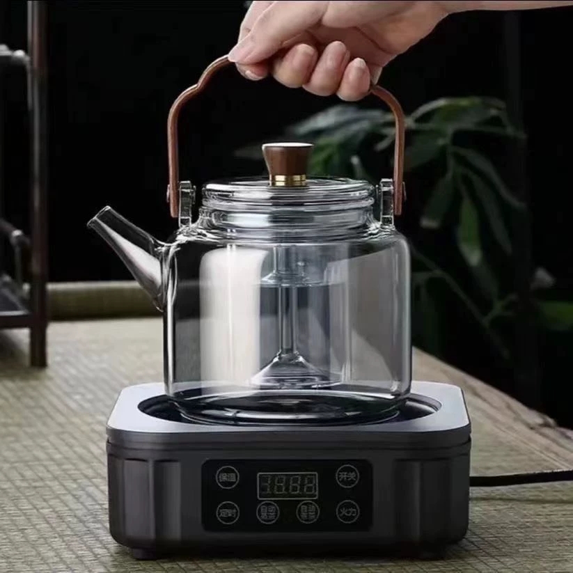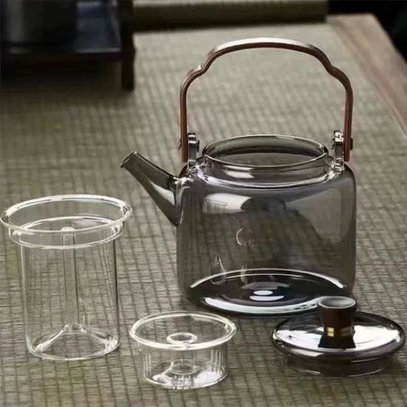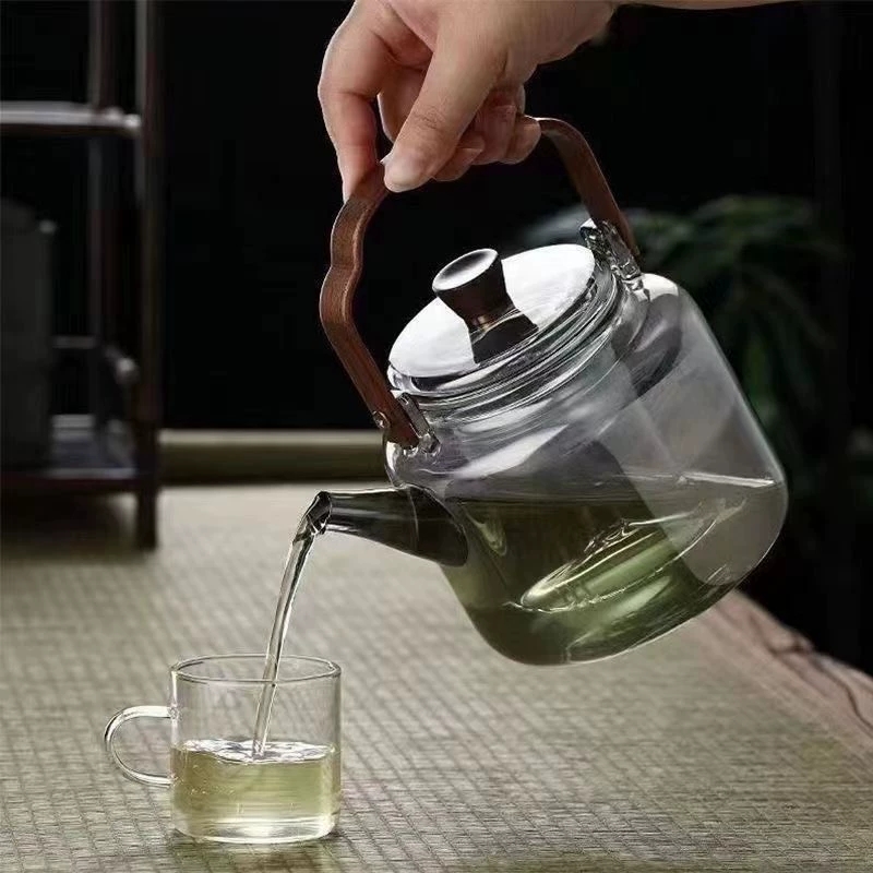 胡桃木蒸煮一体玻璃提梁茶壶加厚耐热茶壶家用电陶炉烧水壶