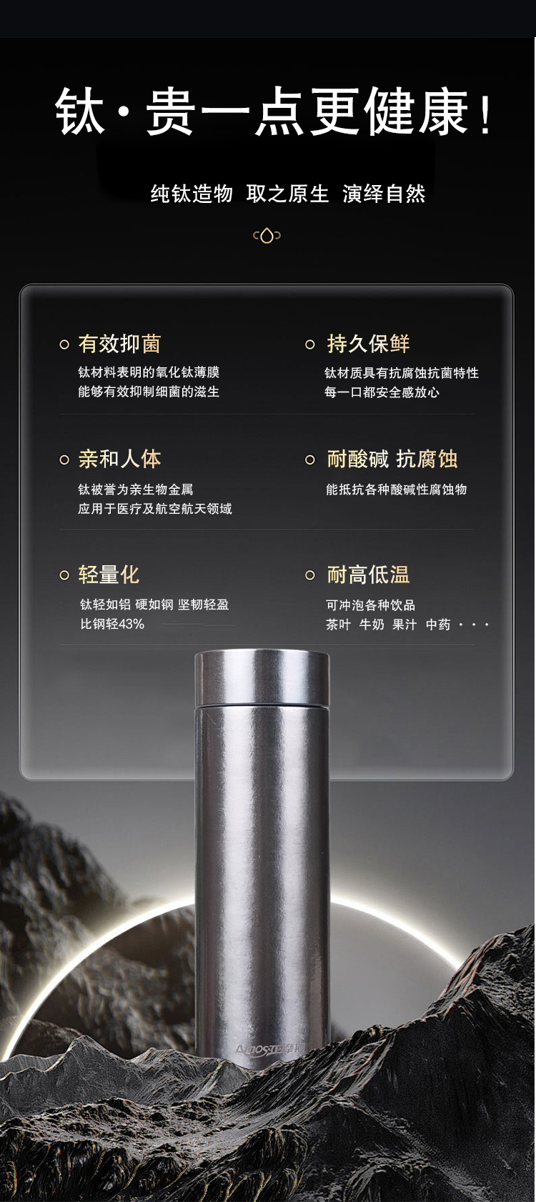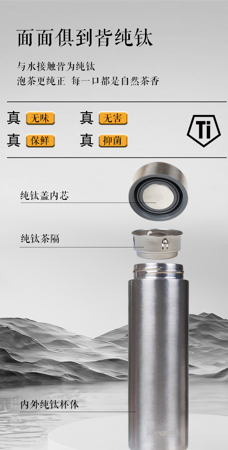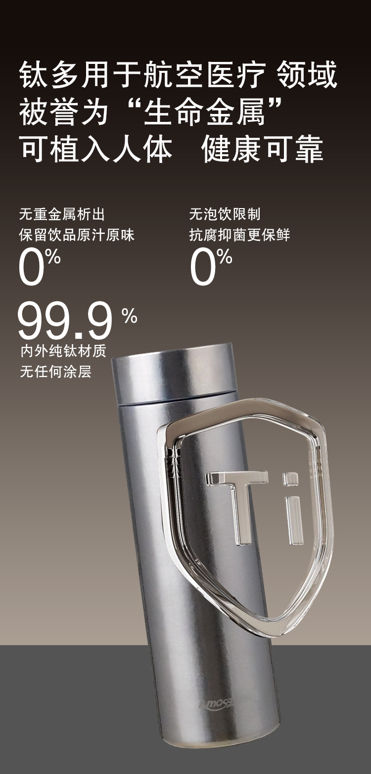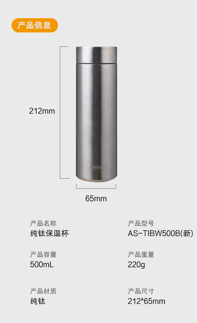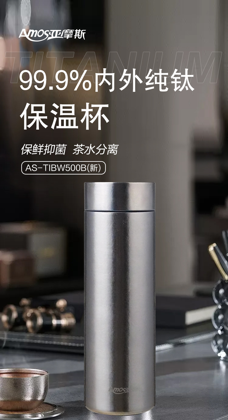 【健康纯钛 便携出行】亚摩斯水杯保温杯内外纯钛500ML容量AS-TIBW500B(新)