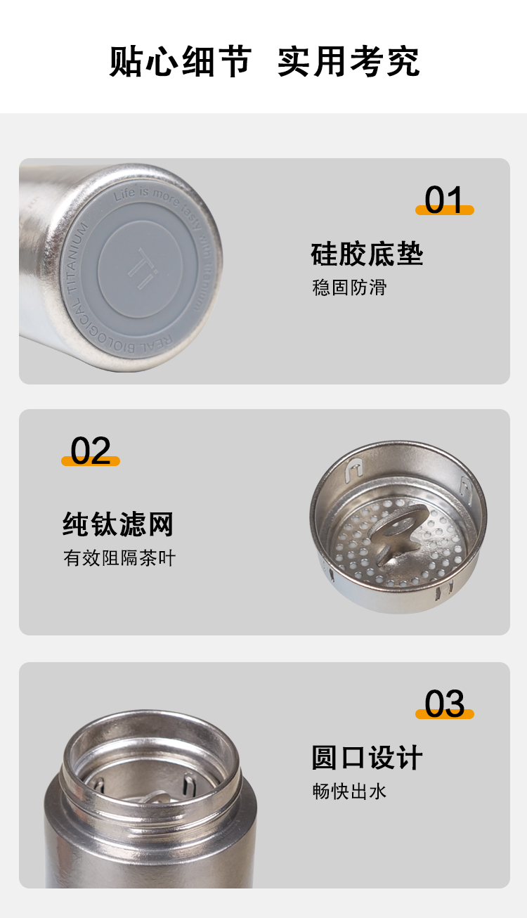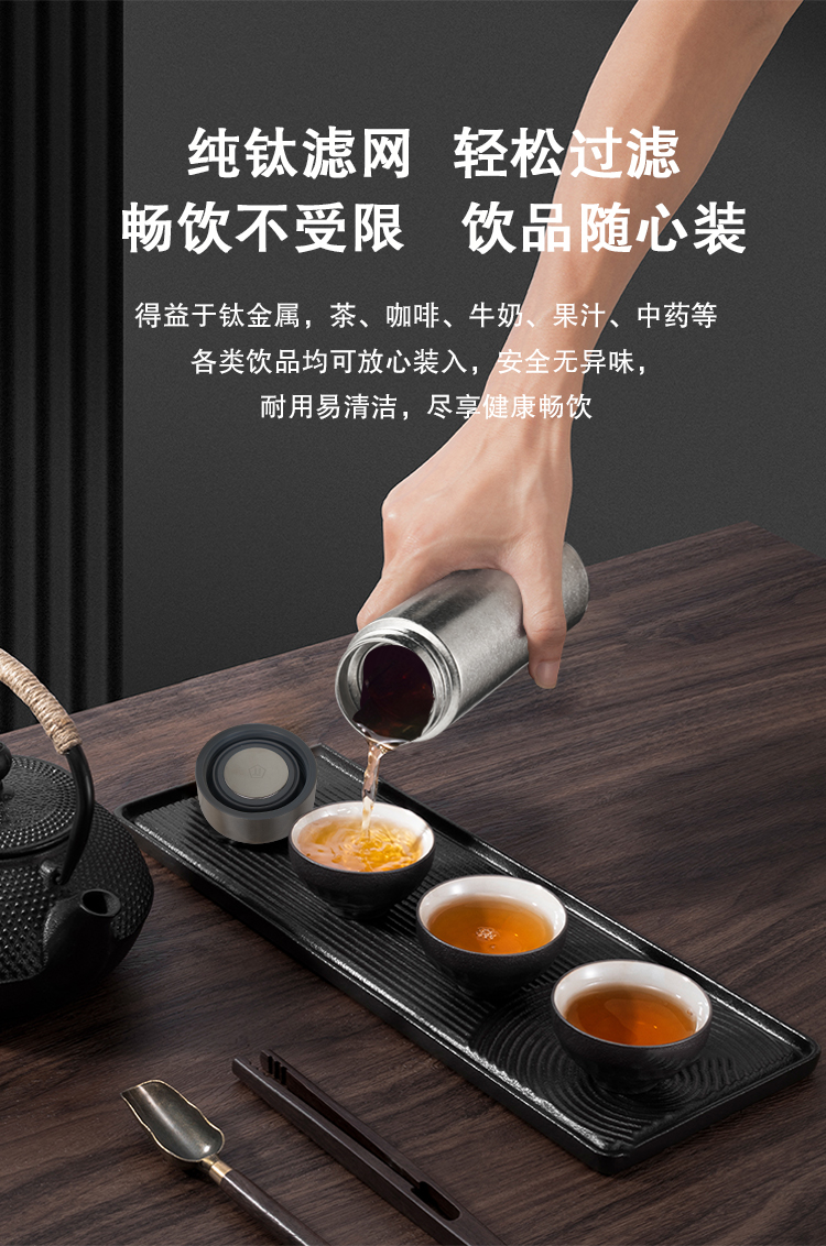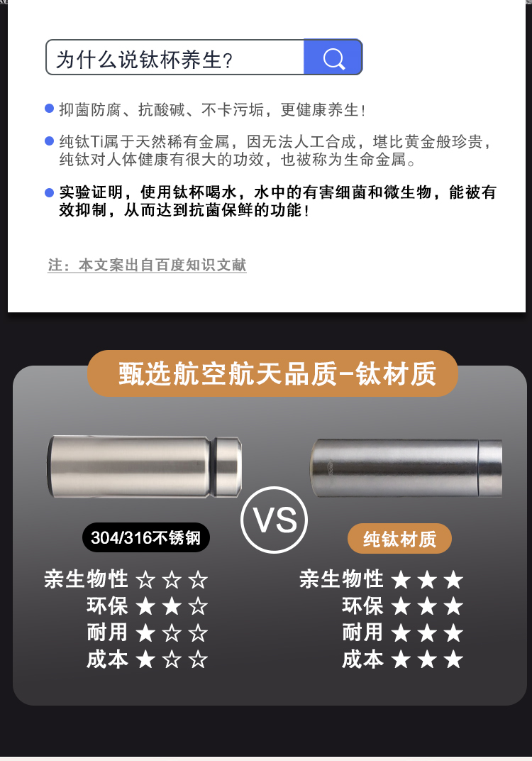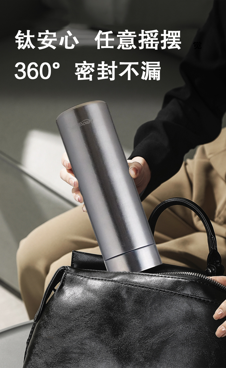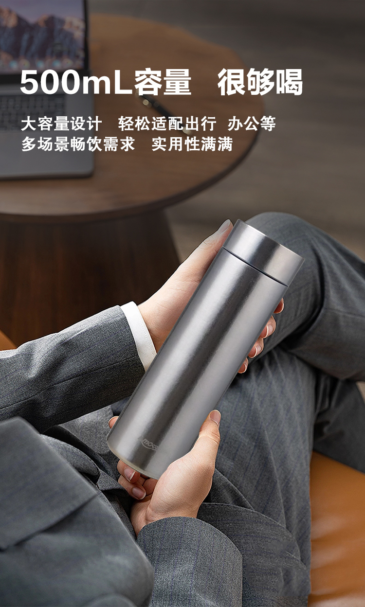【健康纯钛 便携出行】亚摩斯水杯保温杯内外纯钛500ML容量AS-TIBW500B(新)
