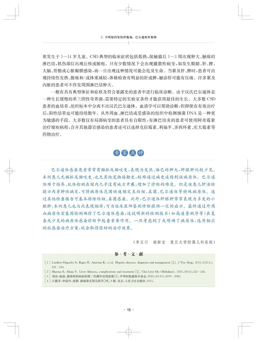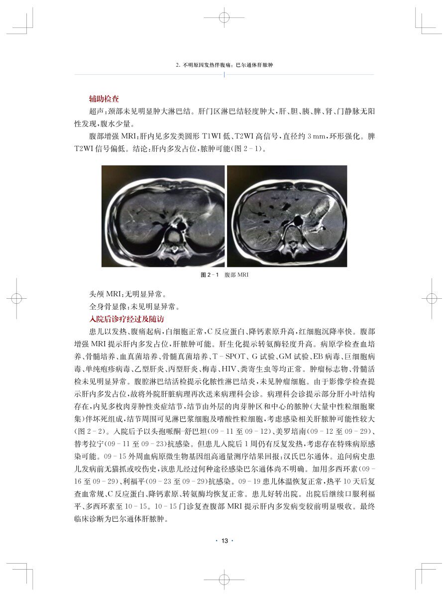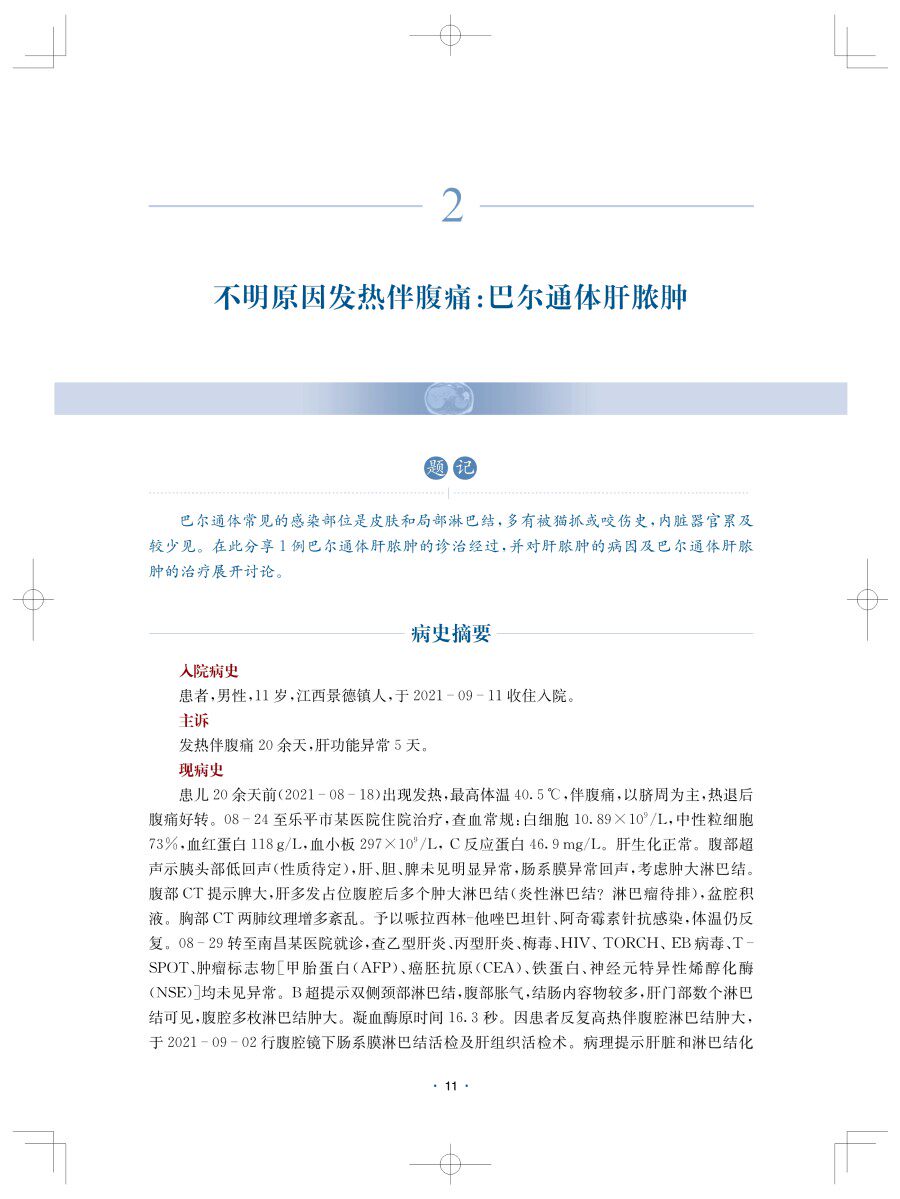 2.不明原因发热伴腹痛:巴尔通体肝脓肿11