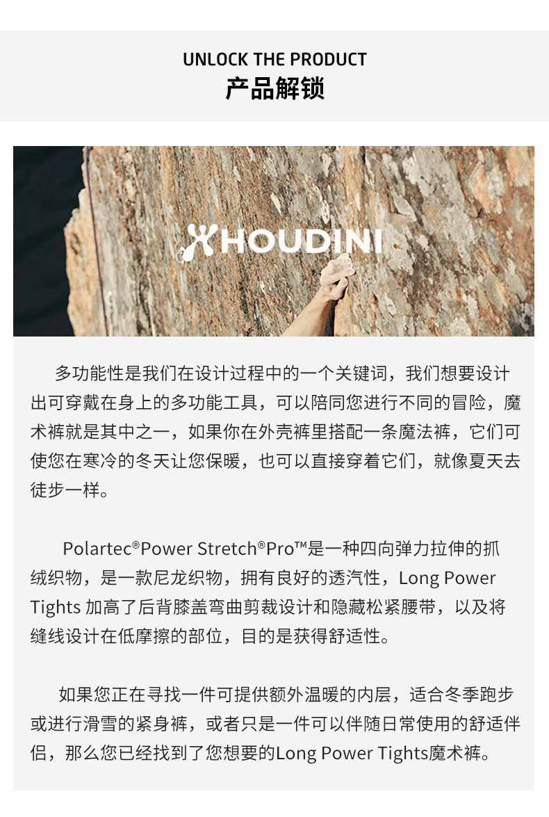 HOUDINI胡丁尼 Long Power Tights 魔术裤 男款抓绒紧身长裤226884