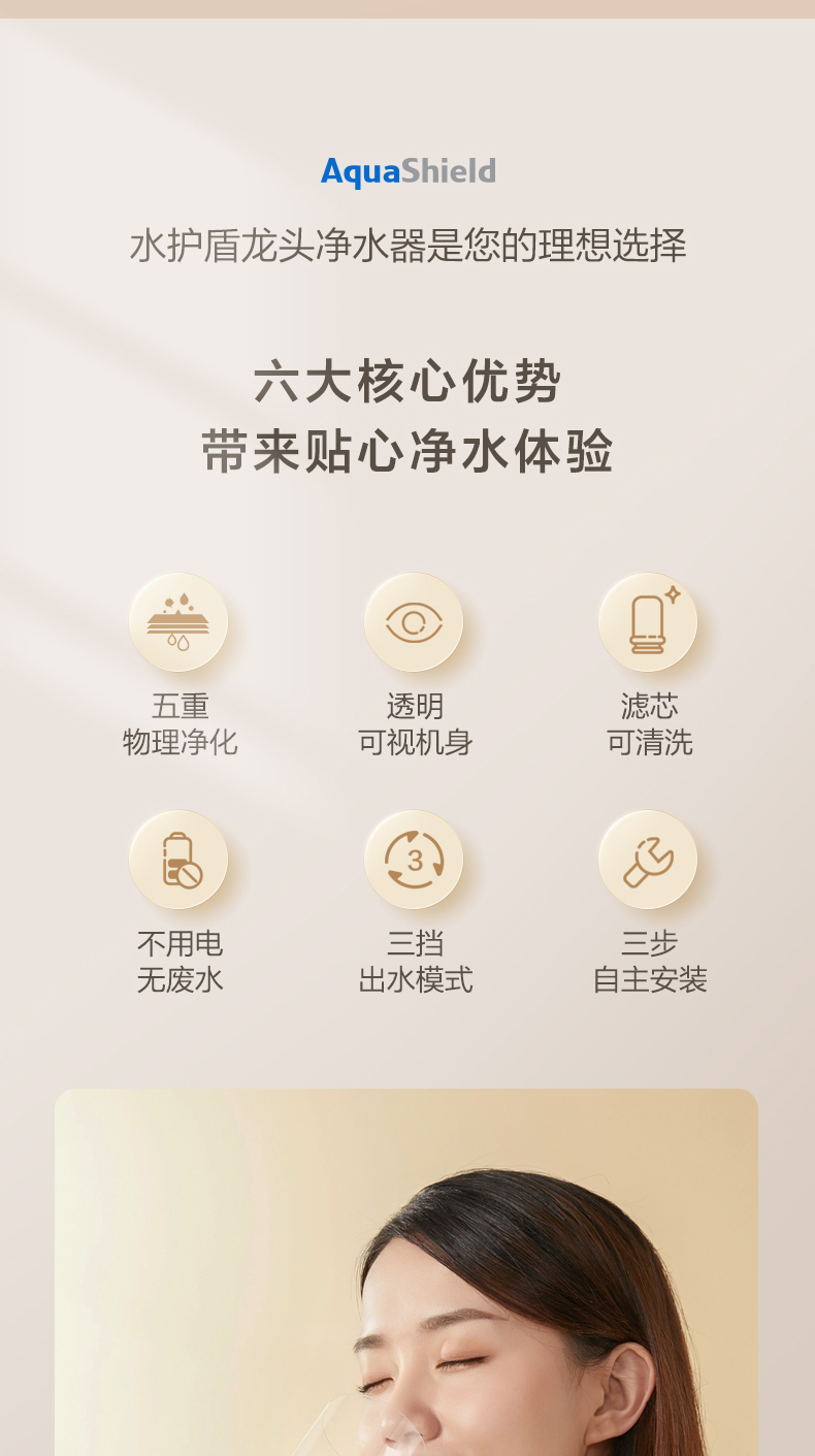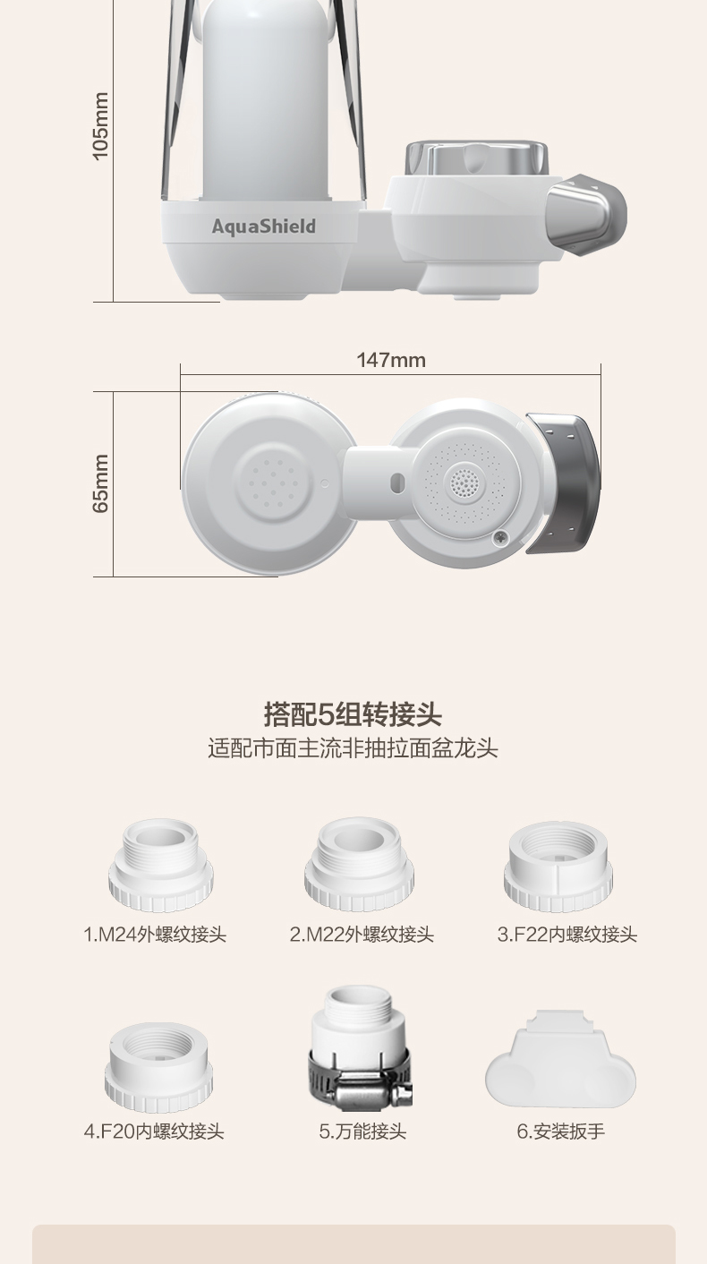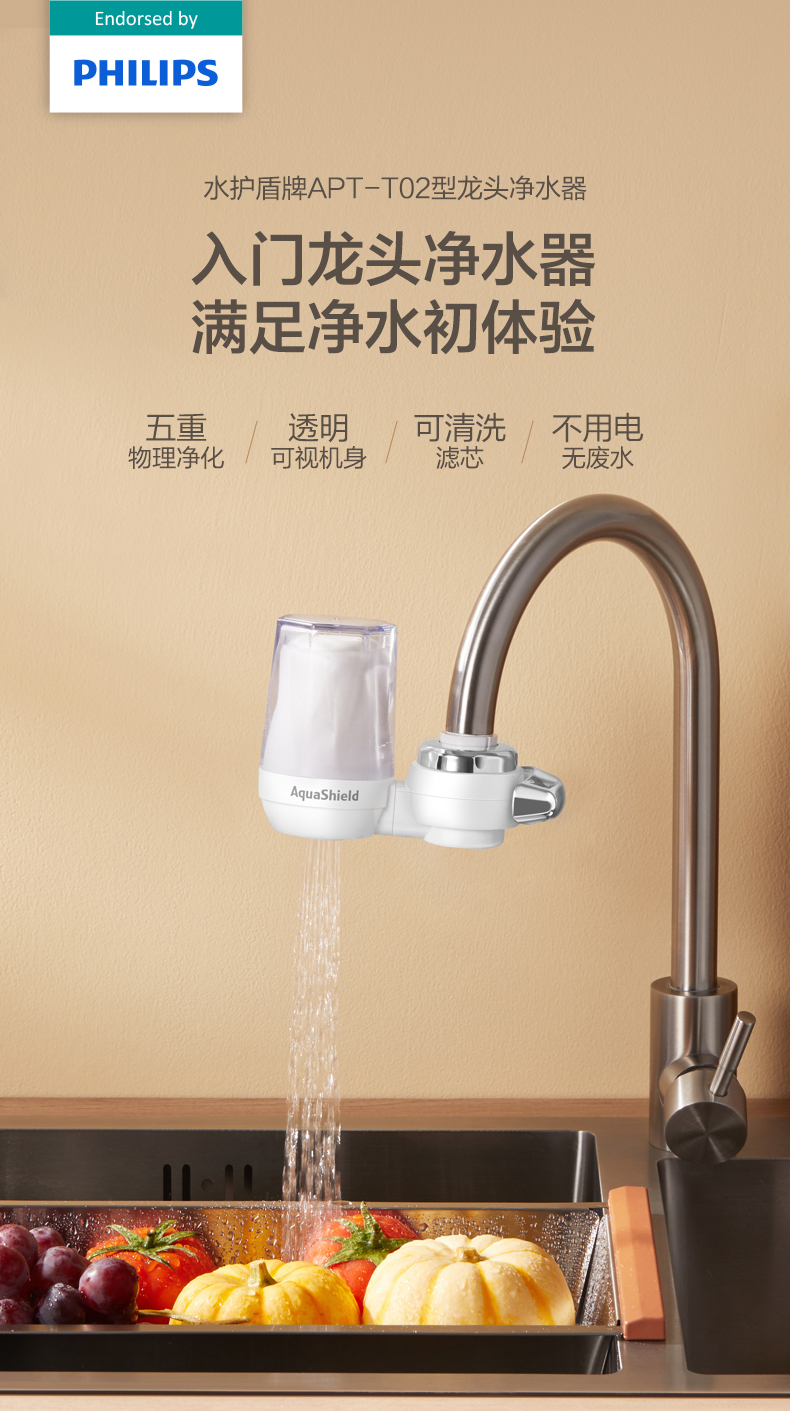 飞利浦出品水护盾(AquaShield)厨卫两用 APT-T02型龙头净水器