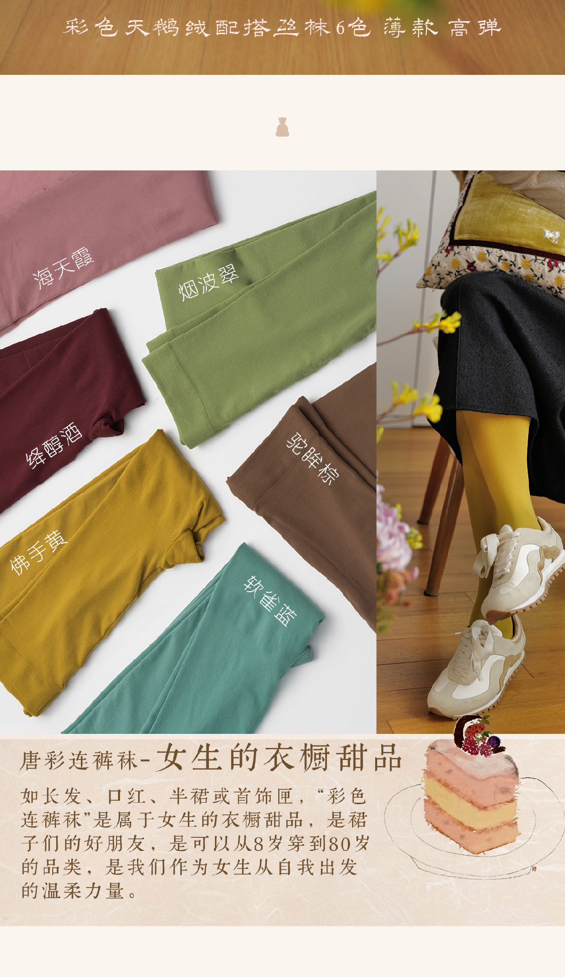 唐画设色 彩色天鹅绒配搭丝袜 6色 高弹 山林曦照