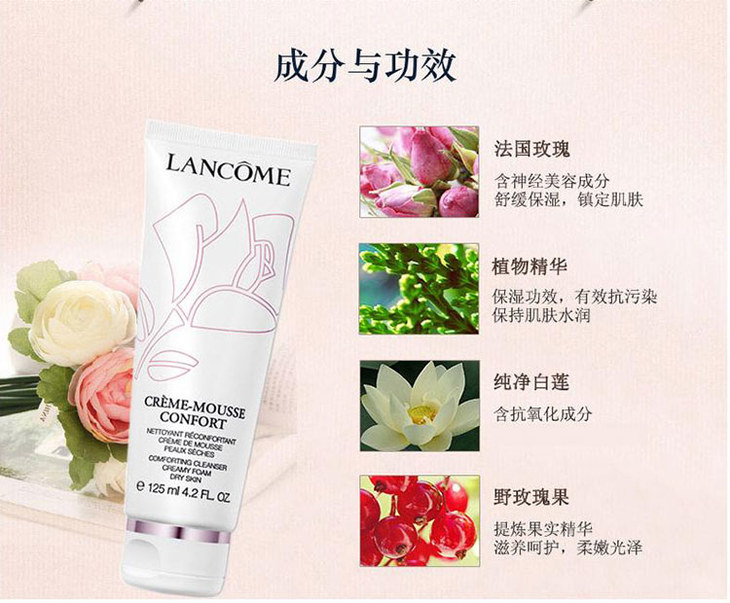 〖香港直邮〗法国兰蔻Lancome 温和柔肤粉色泡沫洁面乳125ml