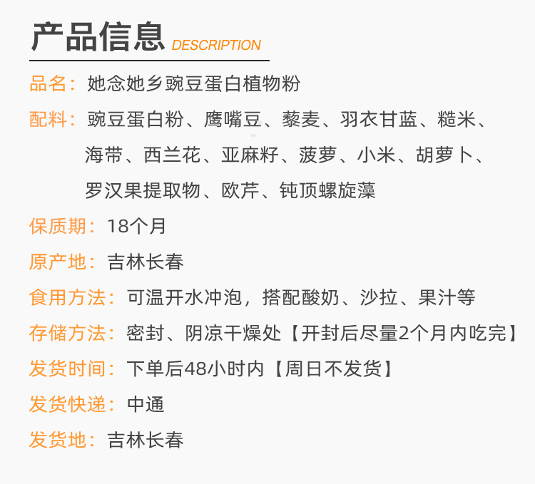 她念她乡 豌豆蛋白植物粉 480g/罐