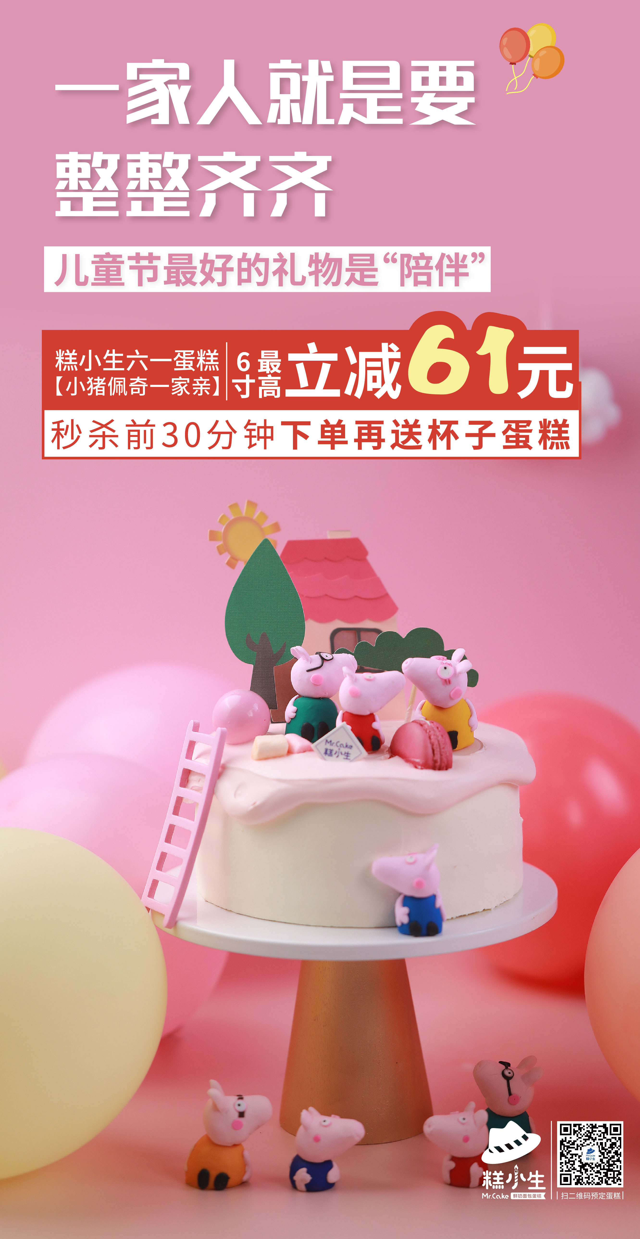 最好的礼物是陪伴、61定制款【小猪佩奇】,6寸最高立减61元,前30分钟下单再送杯子蛋糕一个!