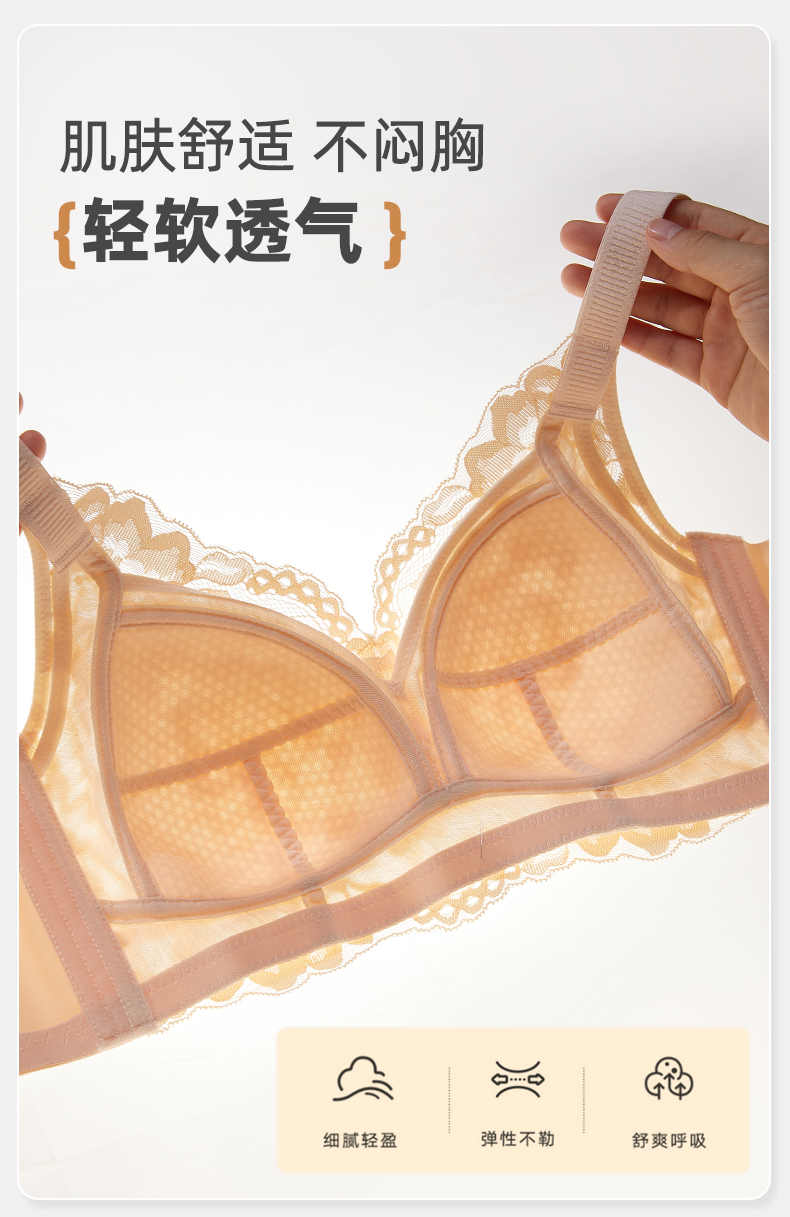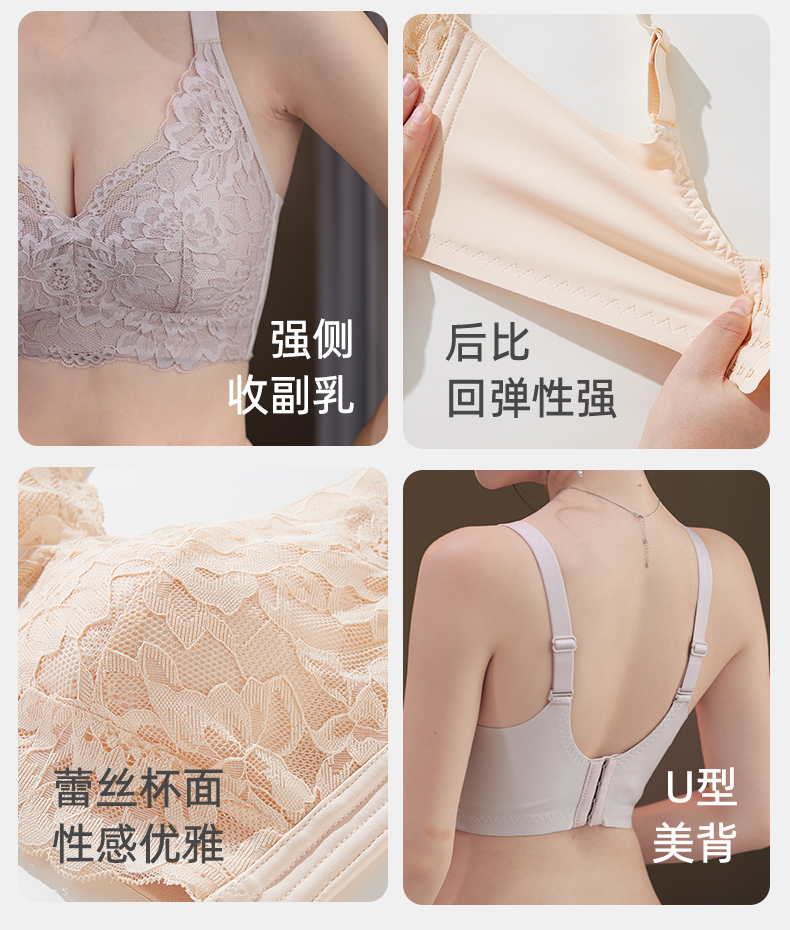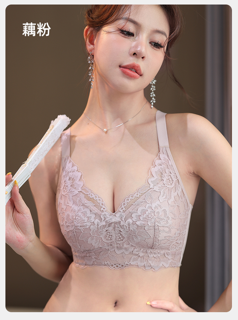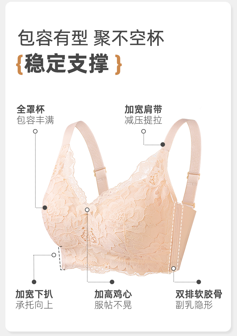雅黛丽内衣女大胸显小薄款文胸无钢圈收副乳防下垂大码全罩杯胸罩