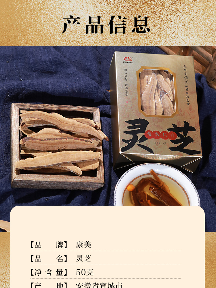 康美灵芝50g/盒 赤芝正宗安徽产地 灵芝切片煲汤煮水泡茶滋补养生