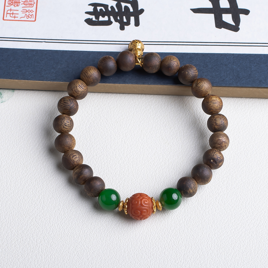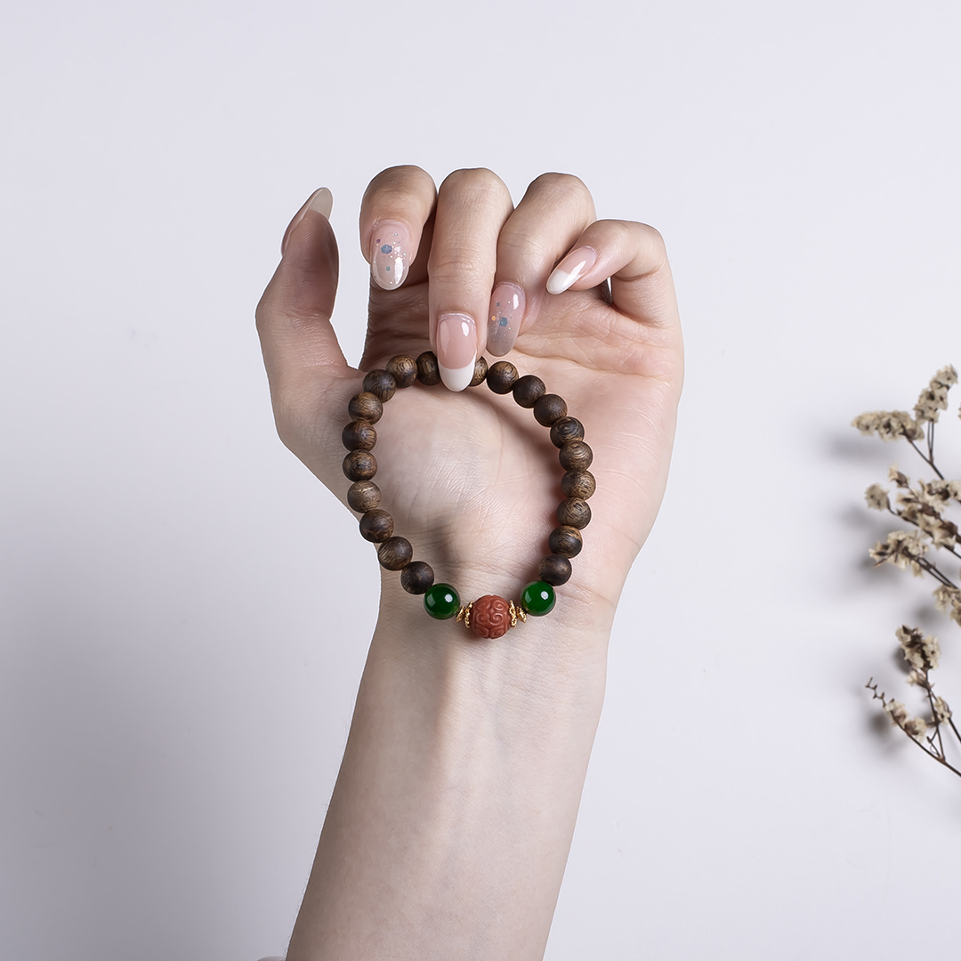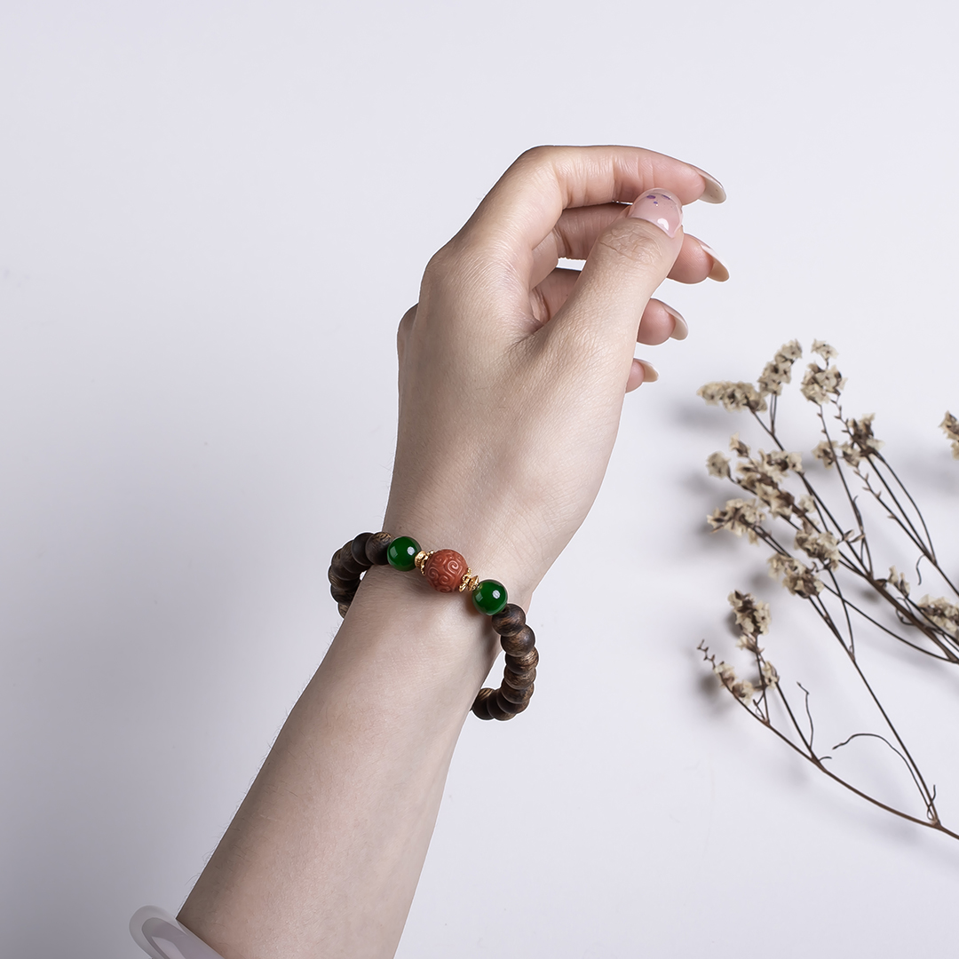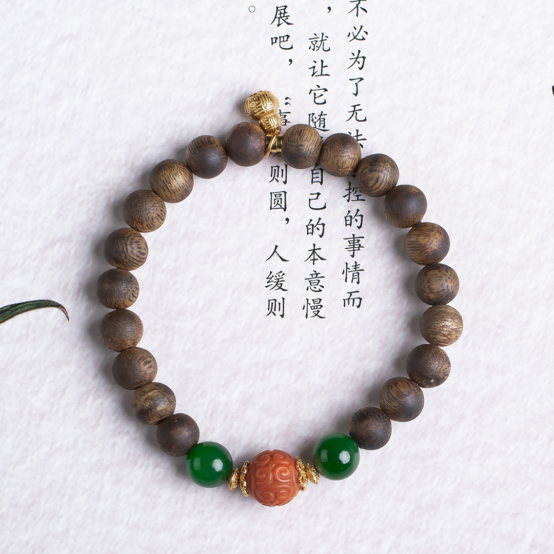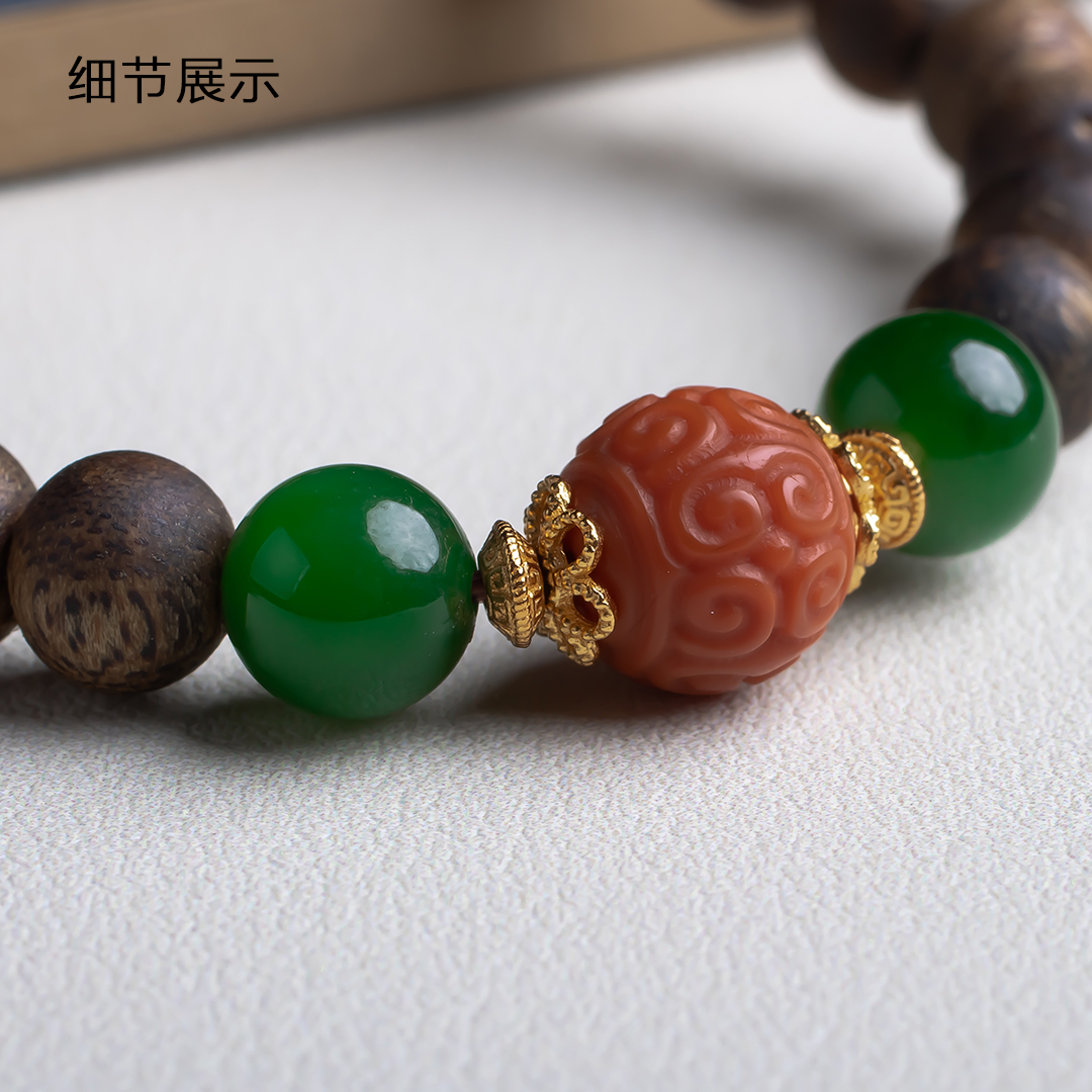 xy0468沉香+碧玉南红回纹珠手串,天然沉香约7.3mm,原色原味,香味自然清甜,一颗满色肉南红回纹珠,幸福绵绵不断头,搭一枚葫芦小坠,吉祥纳福!