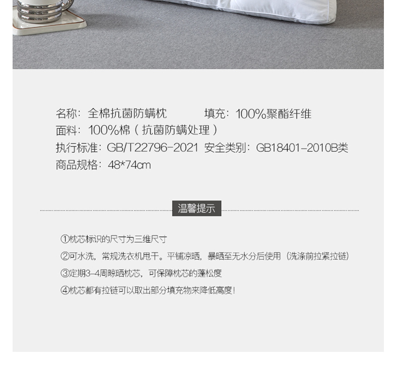 【百富精选】全棉抗菌防螨枕