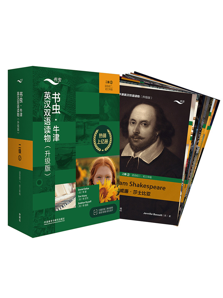 《书虫·牛津英汉双语读物(升级版)二级(2)》是“书虫·牛津英汉双语读物(升级版)”中的一个套装,套装内共12本单书,分别是:《鲁宾孙漂流记》《风中奇缘》《绿山墙的安妮》《森林王子》《福尔摩斯探案故事》《山怪的故事》《威廉·莎士比亚》《格雷丝·达林》《面包店里的误会》《罗密欧与朱丽叶》《法兰克福的耳环》和《钢琴之恋》每本书配读前、读中和读后练习,学生扫描盒子封底二维码,可免费听音频,查看练习题答案,并进行读后测评,适合初二、初三年级学生阅读与学习。