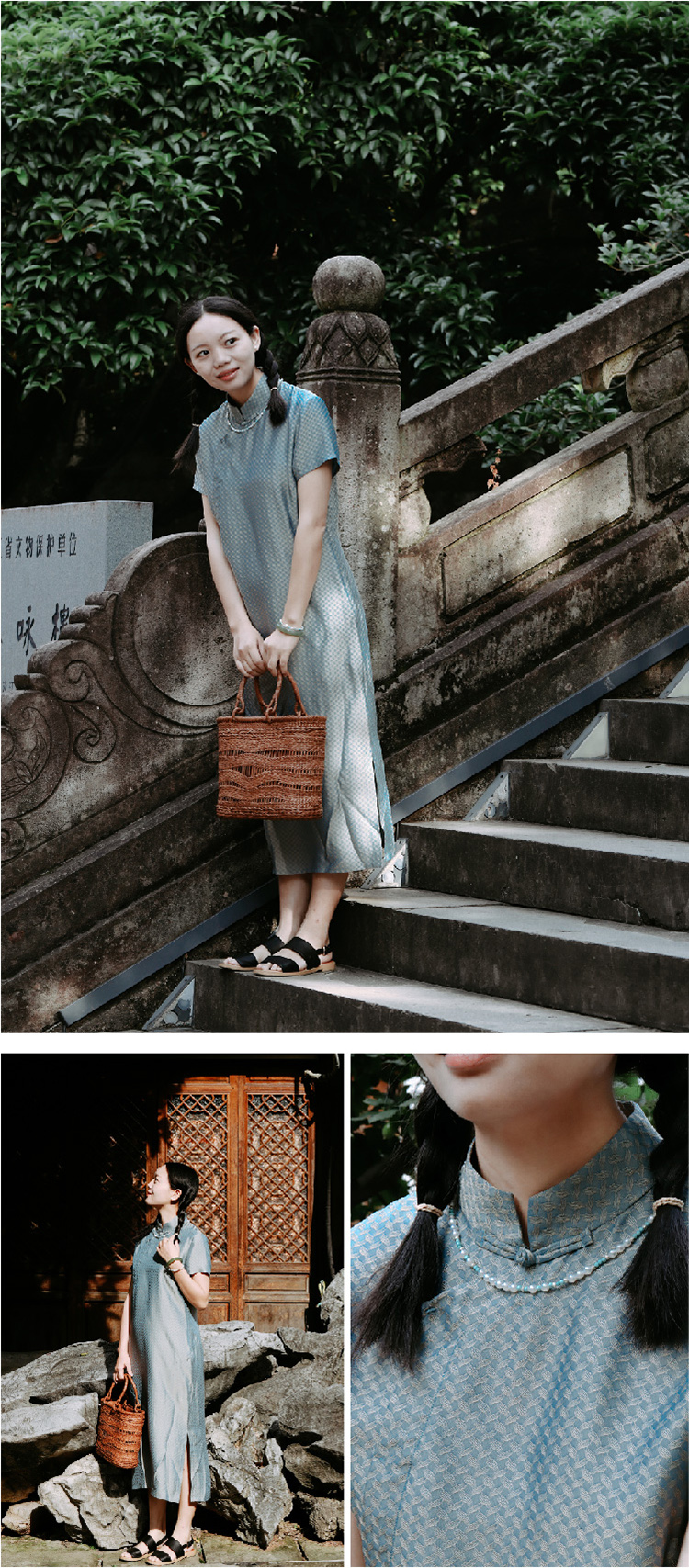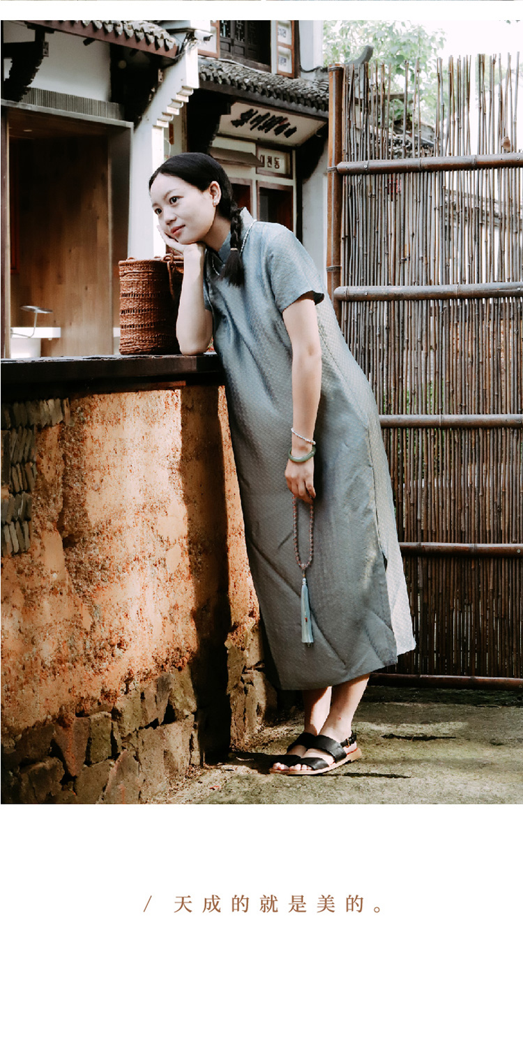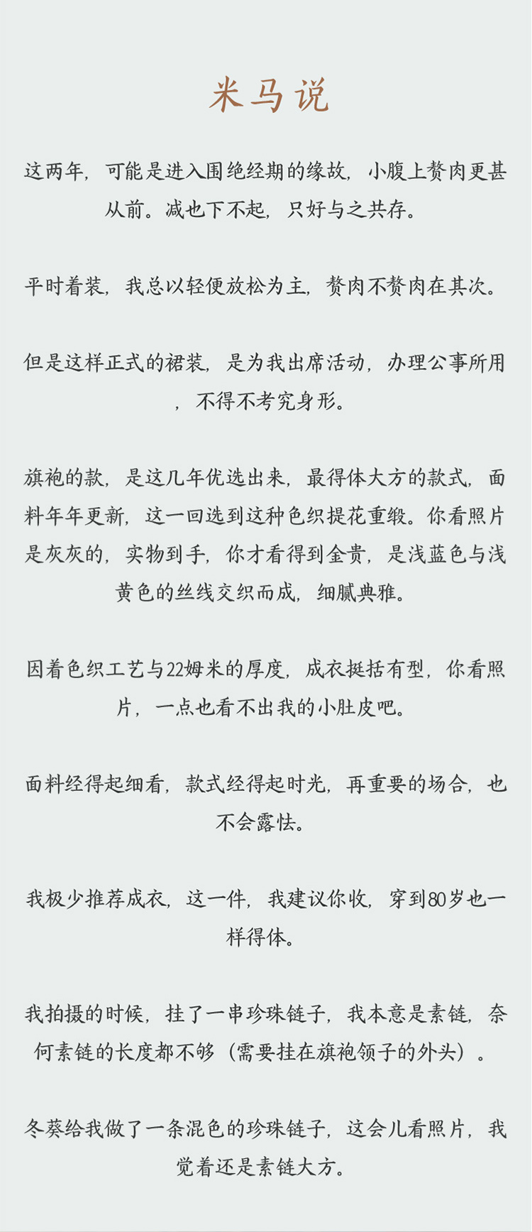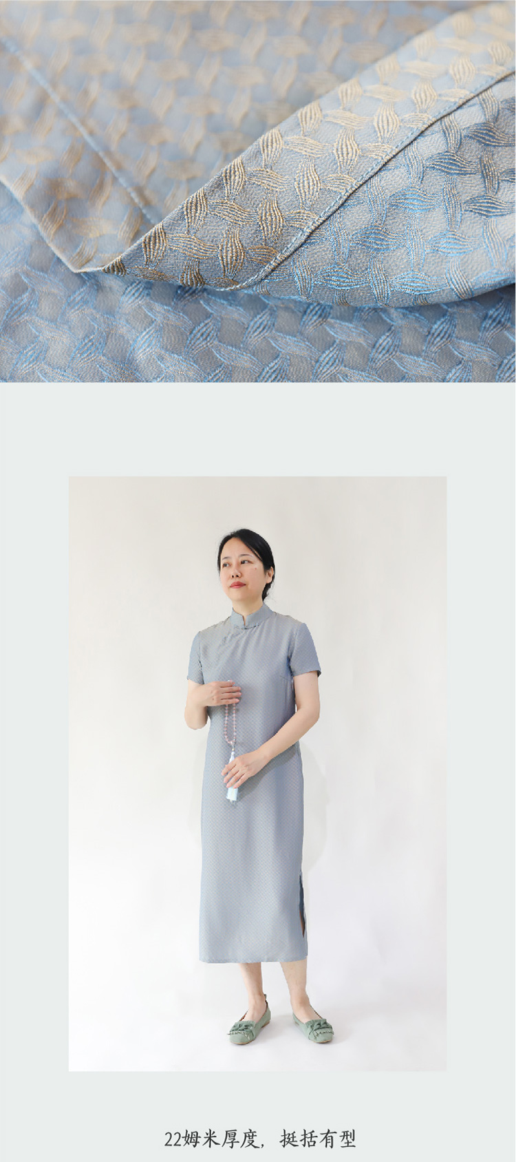 米马成衣 优雅板正22姆米色织提花重缎 中式长裙 旗袍