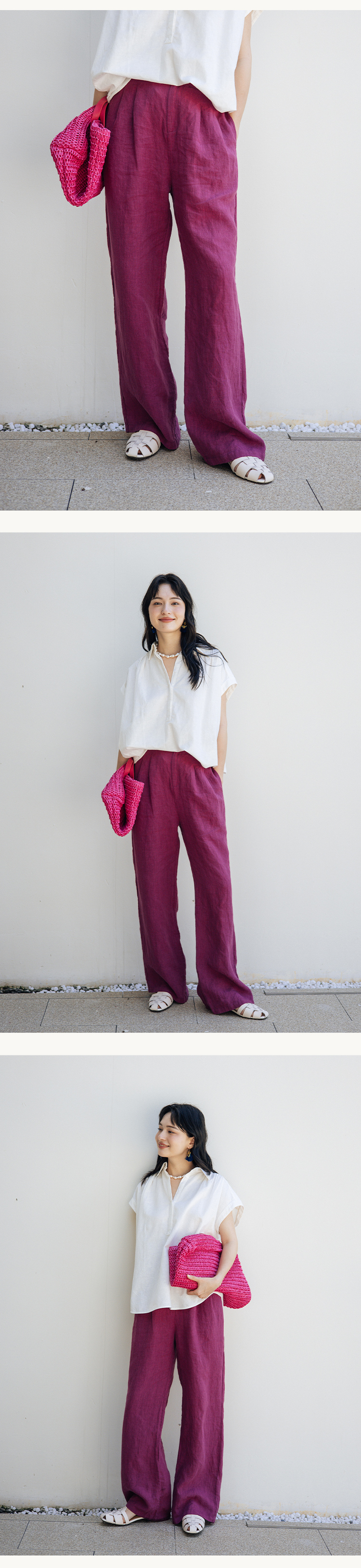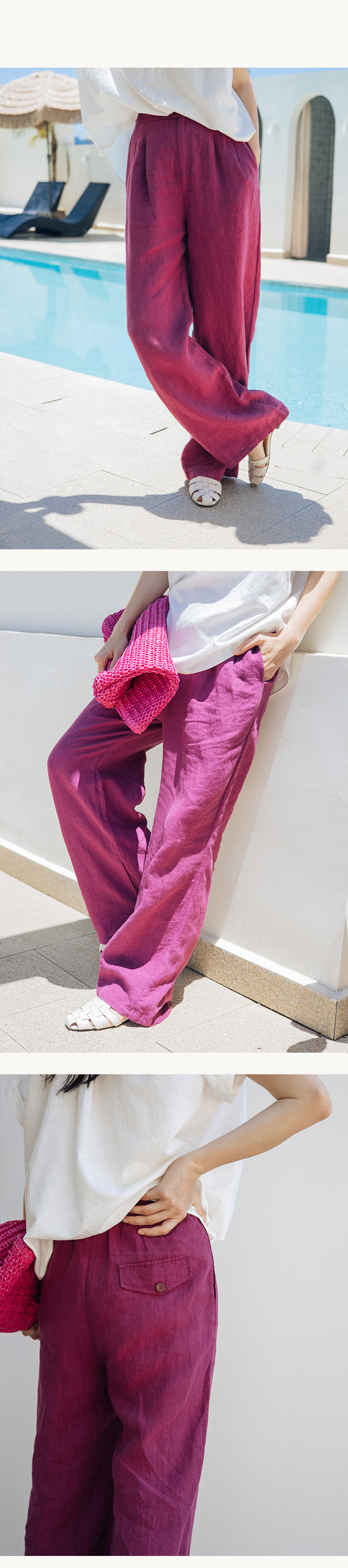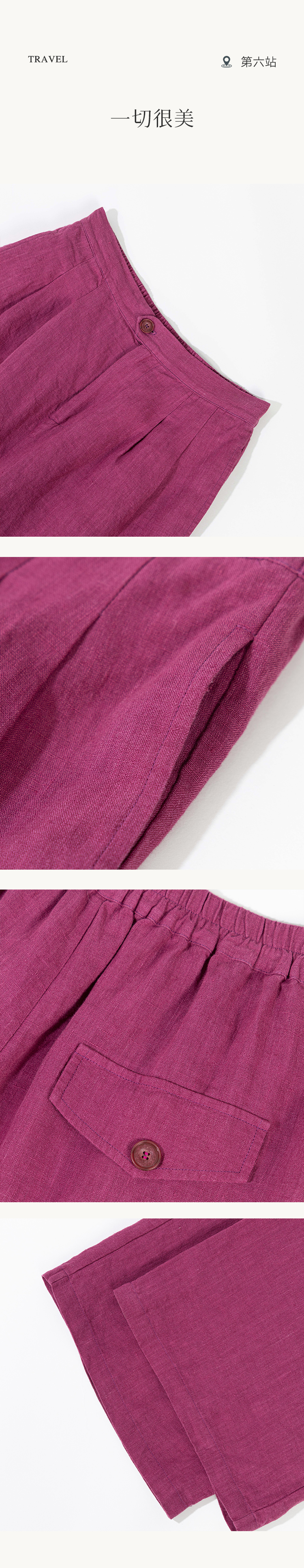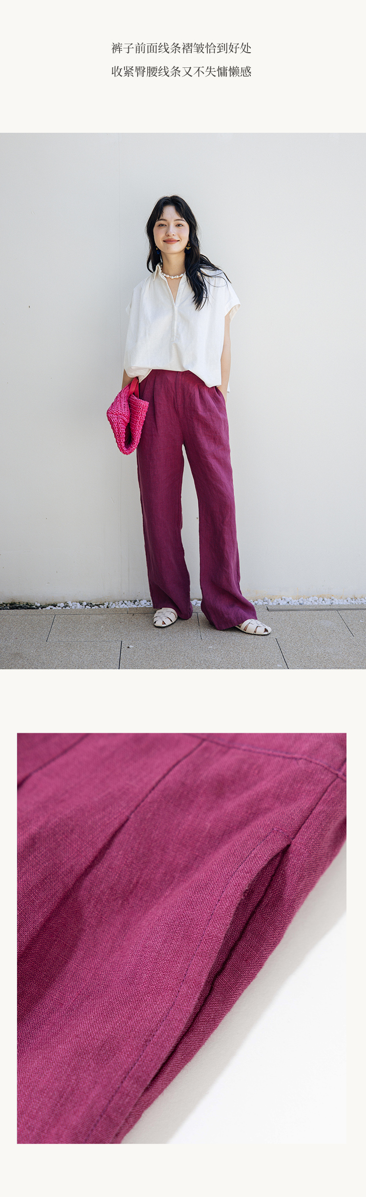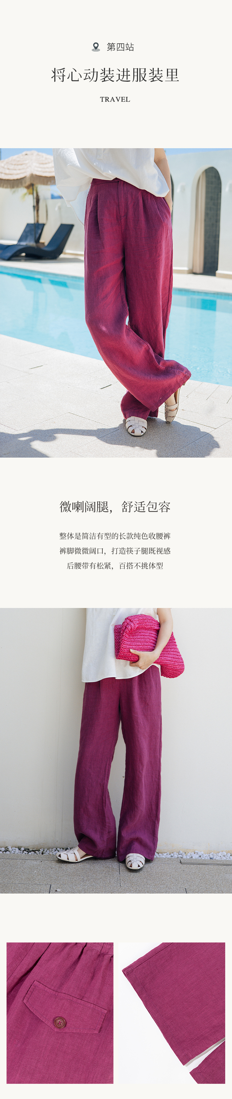 绽放348朵【入蓝系列】2024新款干洗亚麻百搭微喇宽松显瘦休闲裤