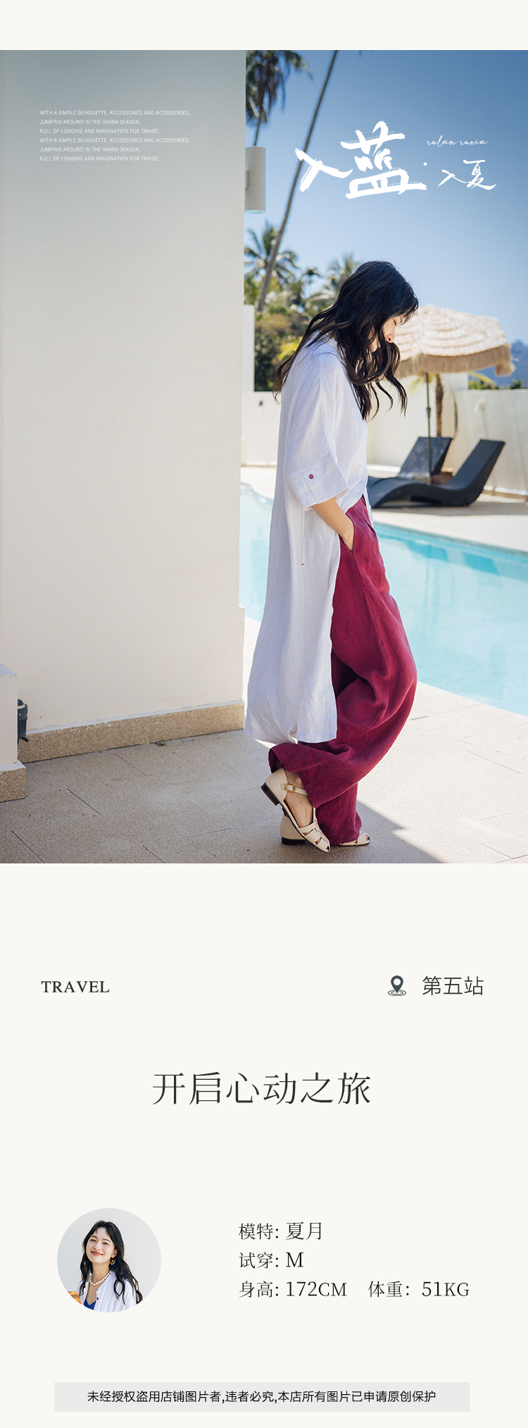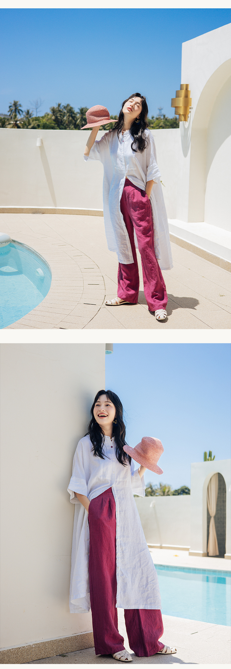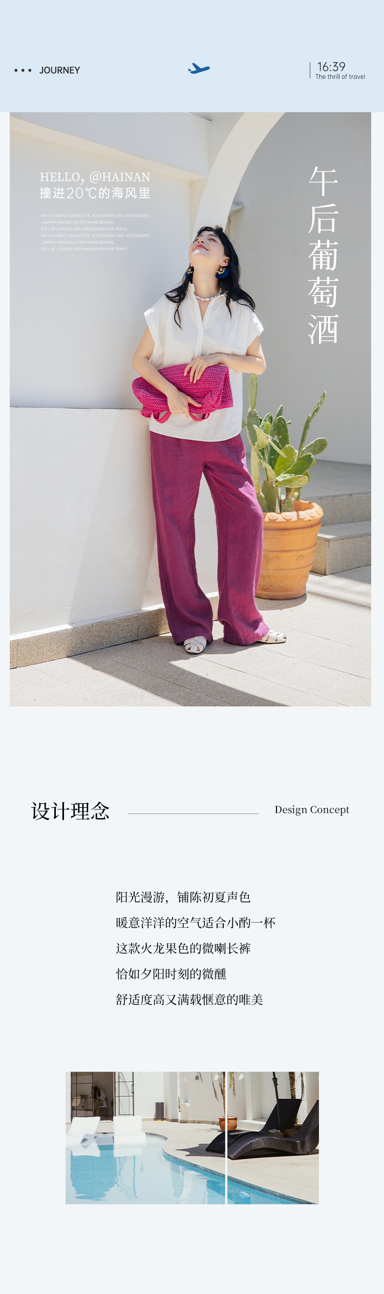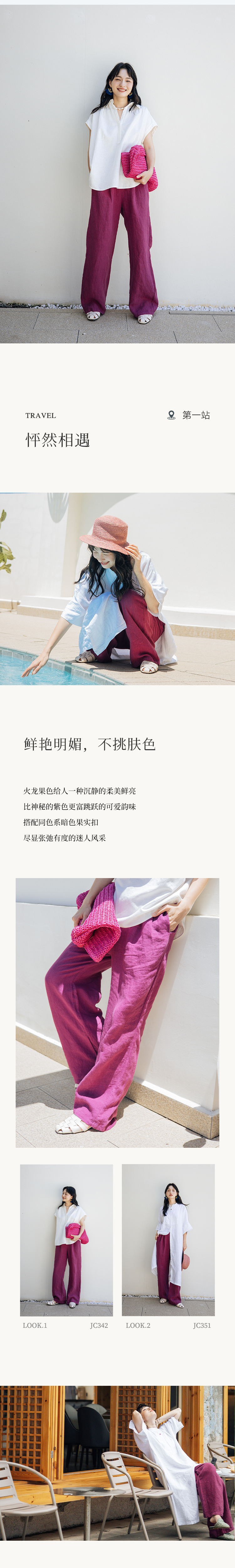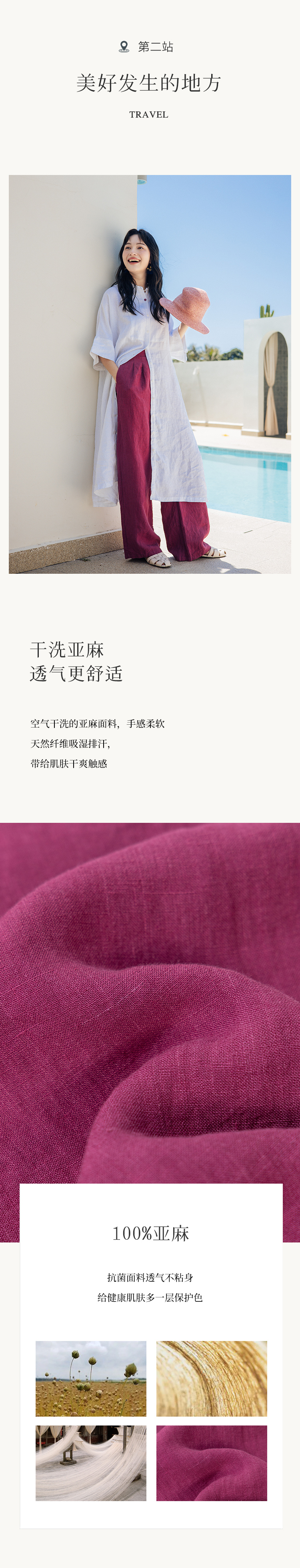 以天然亚麻为载体,融合热烈色彩与自在剪裁为身在城市、心怀远方的女性提供兼具美学与舒适的旅行着装
