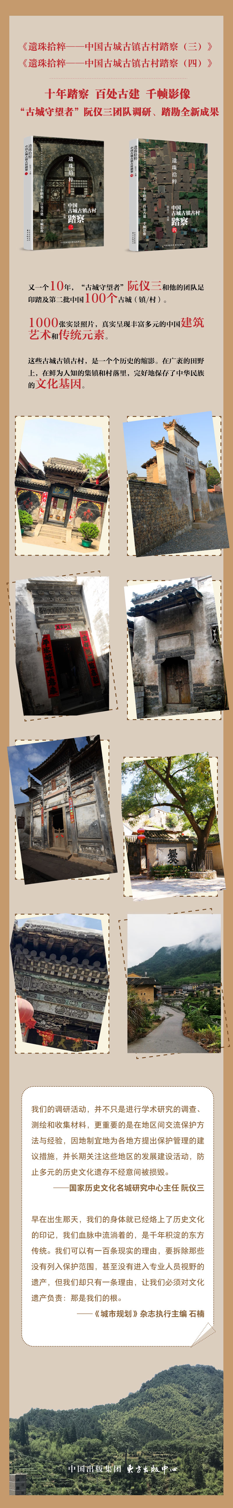 这套书汇集了阮仪三团队全面深入中国古城、古镇、古村调研所获得的一手资料,是一部生动的关于历史文化遗产保护的重要著作。《遗珠拾粹:中国古城古镇古村踏察》(五卷本)的出版对中国民间社会研究、中国建筑史研究、中国历史文化研究均具有重要的参考价值;对于普通读者而言是一个了解中国,了解民族历史的重要窗口,也给从事文物保护、文化遗产保护的官员参考决策提供了重要借鉴。