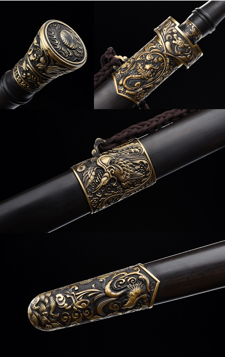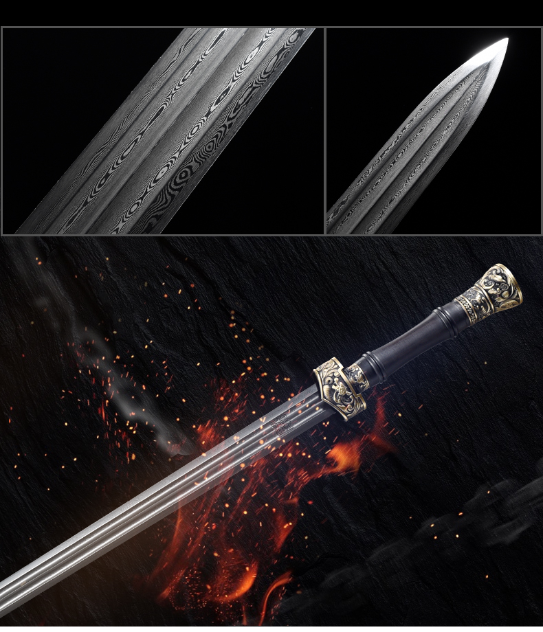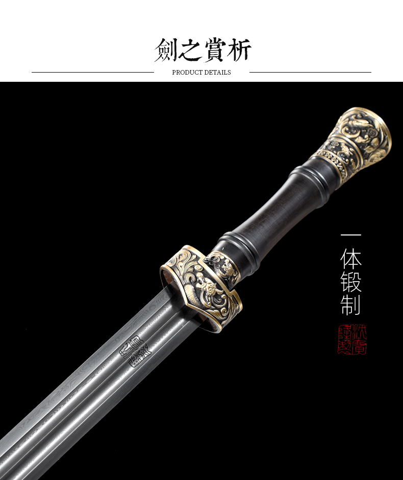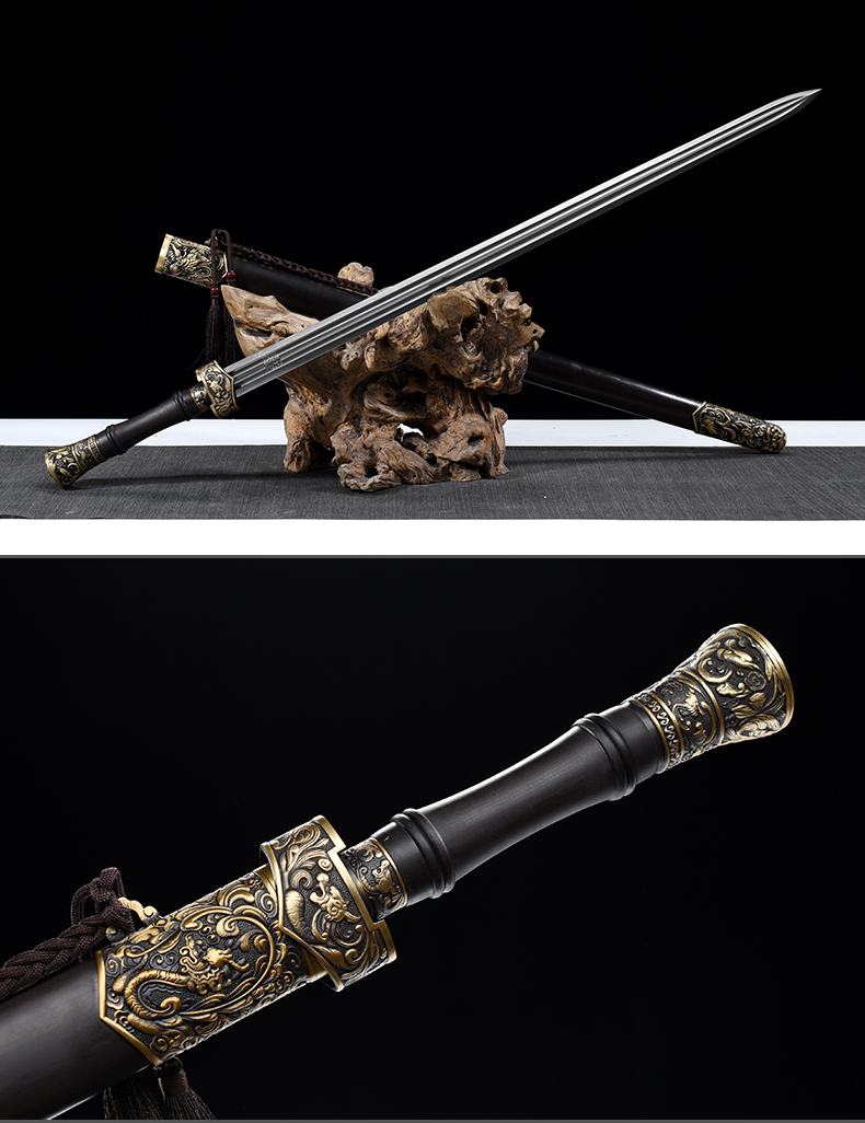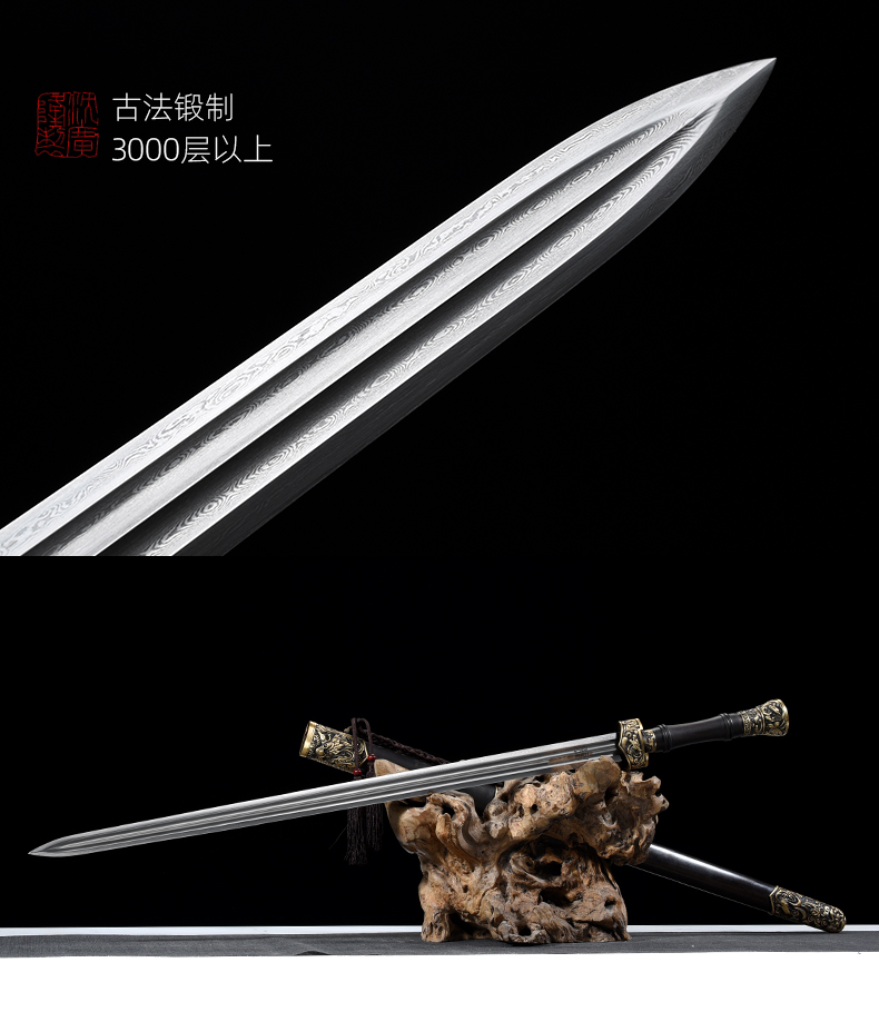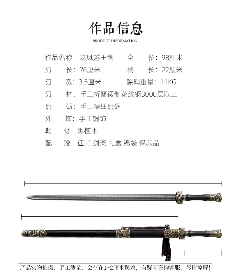 龙凤越王剑 长剑 硬剑 花纹钢一体宝剑 龙泉传统剑 沈广隆宝剑 未开刃