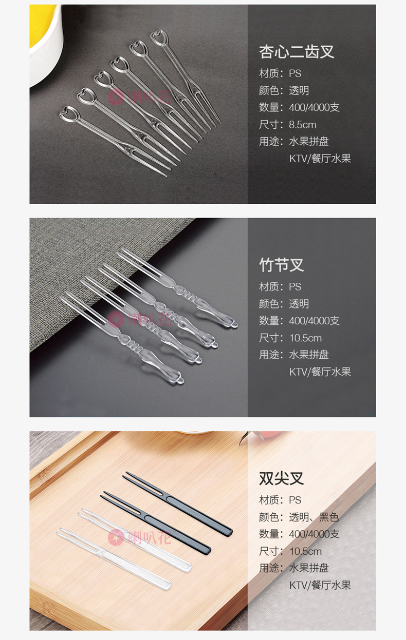 喇叭花常用一次性透明水果叉子水果刺水果叉子蛋糕叉食品叉4000支