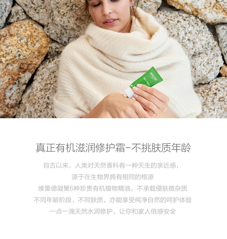- 全球领先的有机护肤品牌WELEDA (维蕾德)。1921年由人智学创始人STEINER创建于瑞士,在德国,瑞士,法国拥有大型的有机种植园。帮助人类以最自然的方式保持健康。倡导 人与自然,和谐统一。