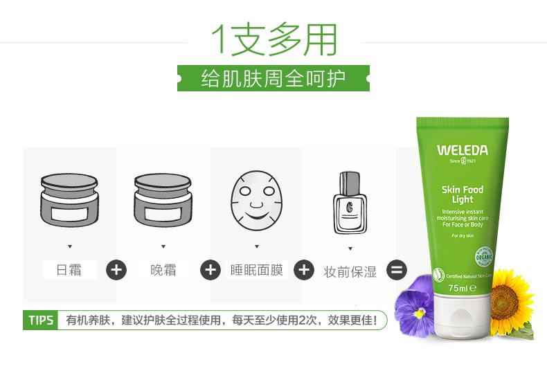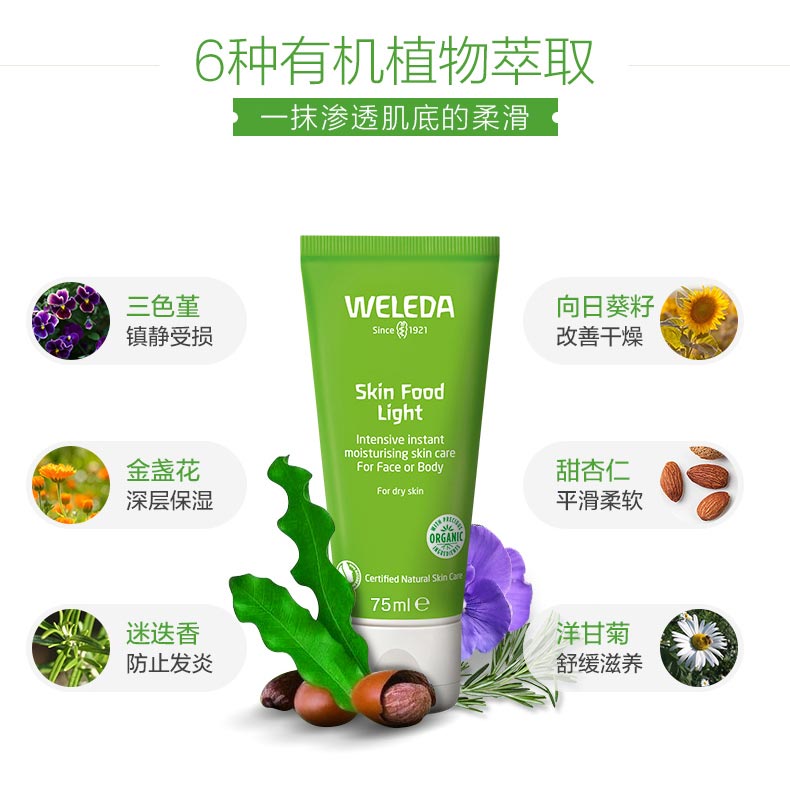 【菜鸟保税】weleda维蕾德skinfood轻薄款全能霜75ml