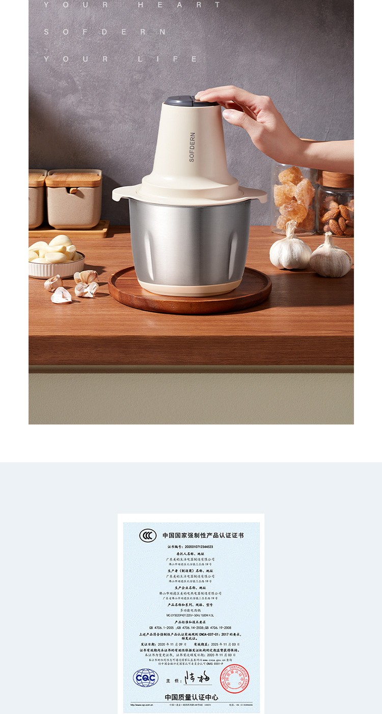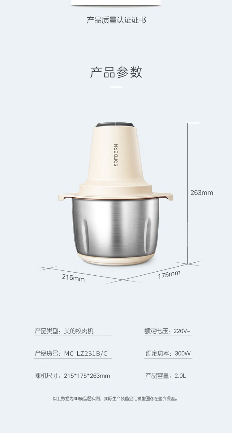 美的(Midea) 绞肉机 家用电动多功能料理机搅菜机搅拌机婴儿辅食机304食品级不锈钢 AMC3001B