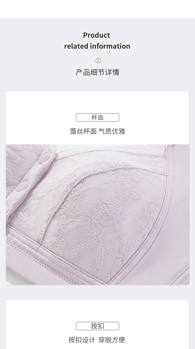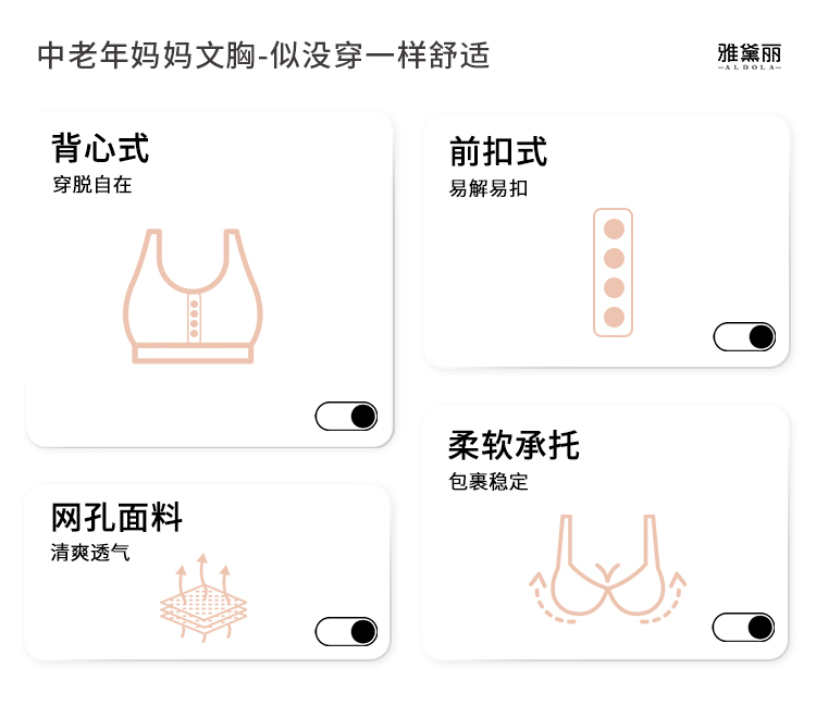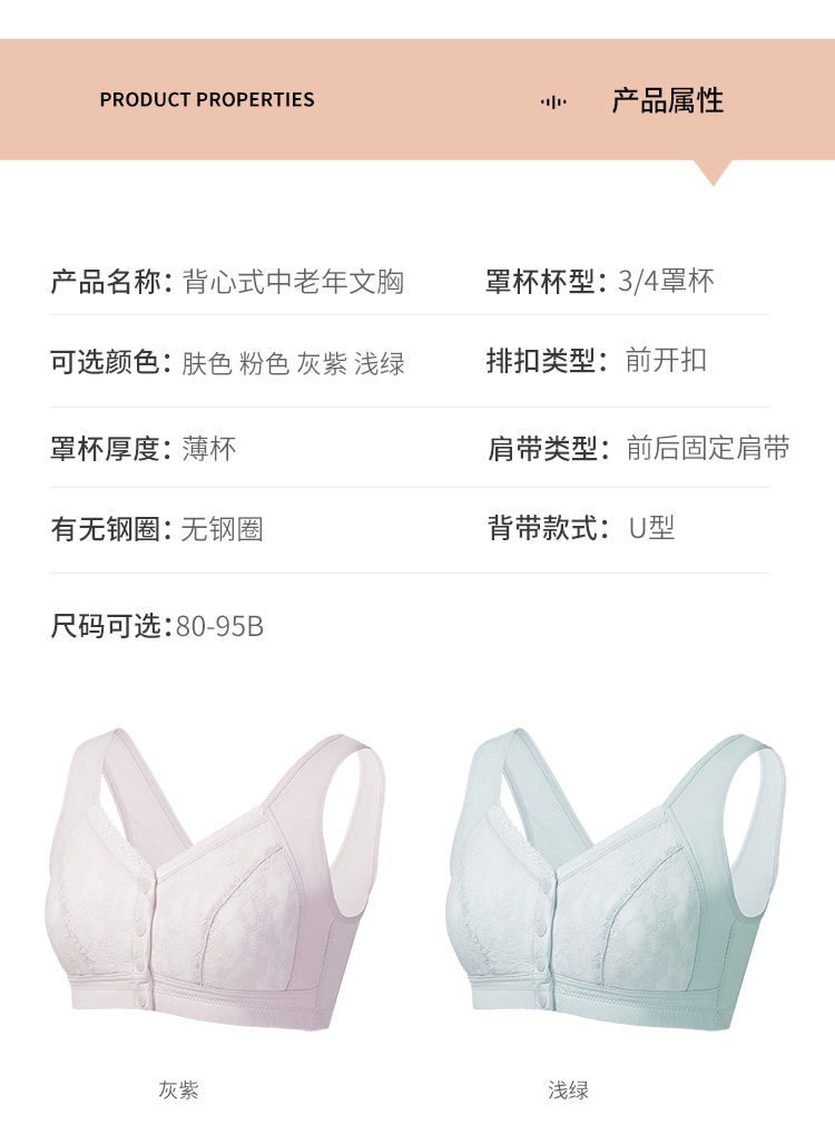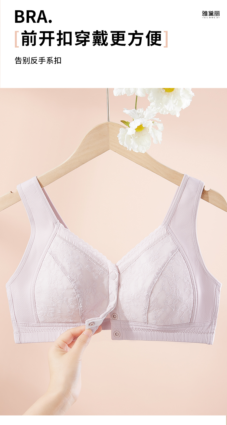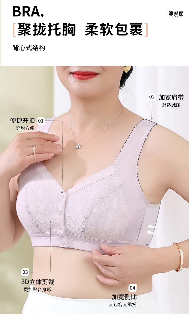 雅黛丽妈妈内衣文胸中老年专用前扣大码背心式胸罩棉质薄款透气女