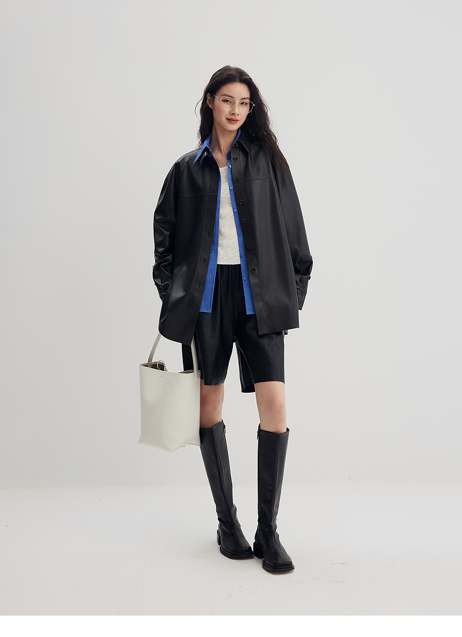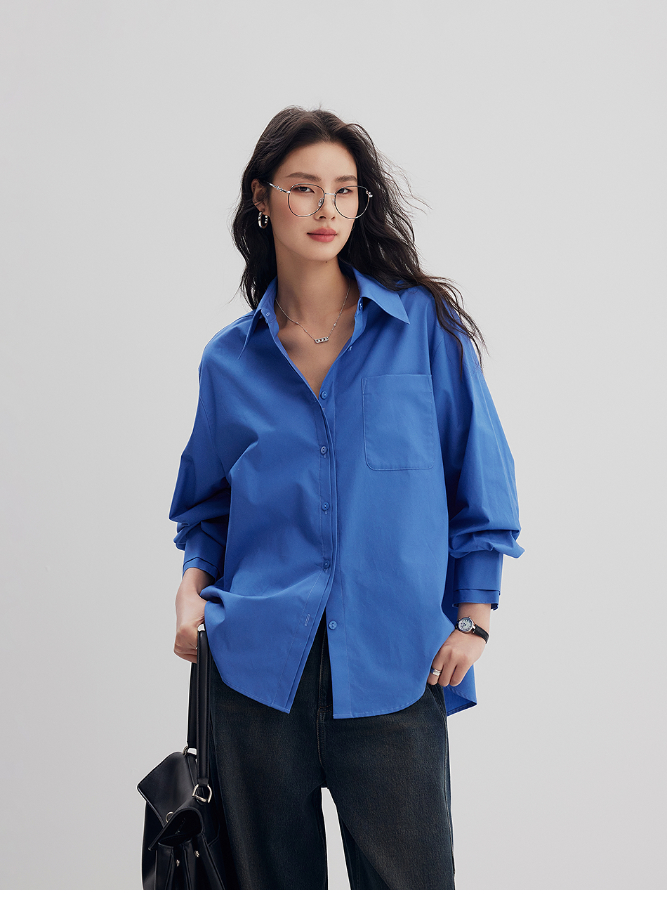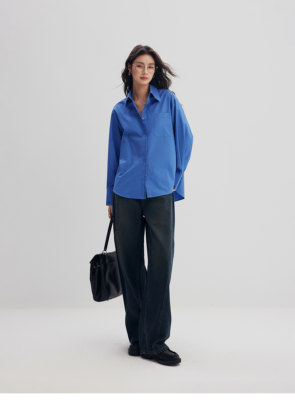 棉仓356604019-液氨双门襟佰搭ROW风廓形衬衫